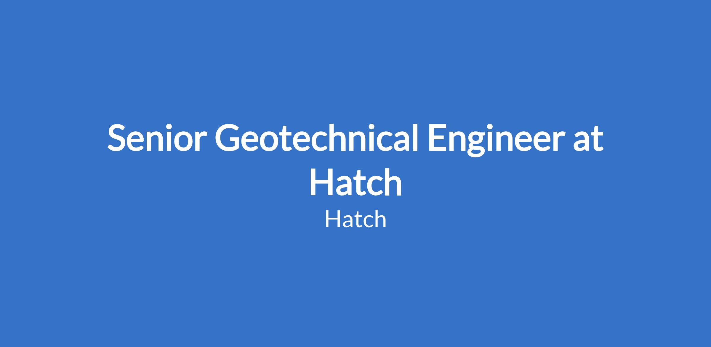 Senior Geotechnical Engineer at Hatch