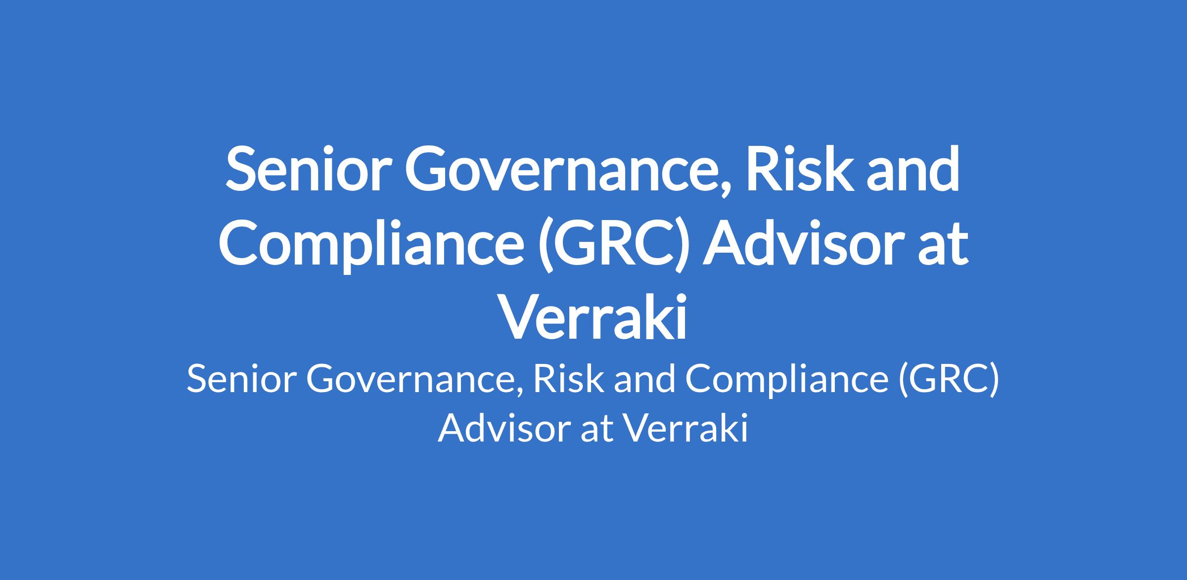 Senior Governance, Risk and Compliance (GRC) Advisor at Verraki