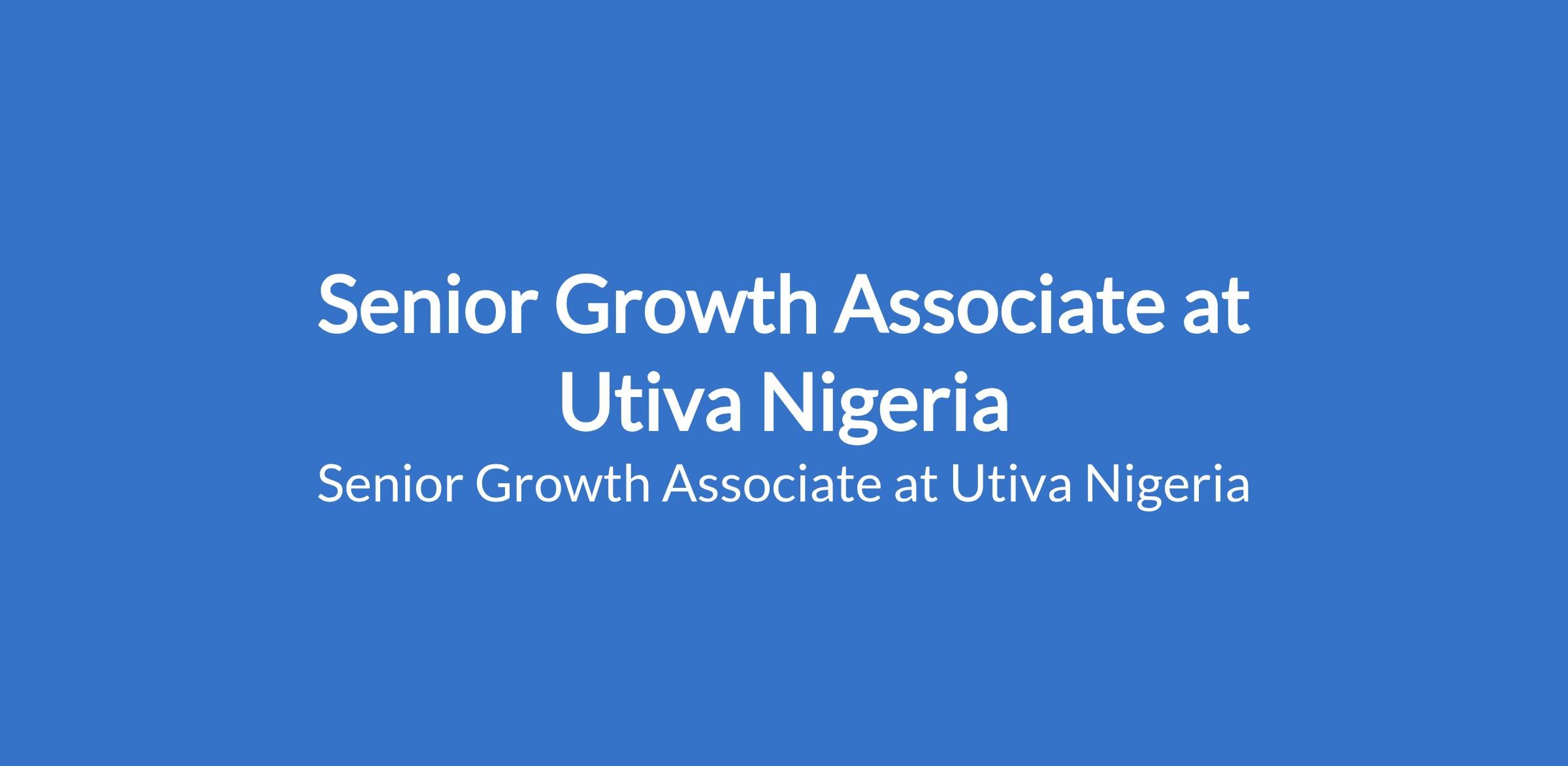 Utiva Nigeria is recruiting to fill the position of: Senior Growth Associate. The position is located in Ojodu Berger, Lagos State. Salary: N150,000 monthly. Interested candidates should possess relevant qualifications with a minimum of 2 years sales experience.