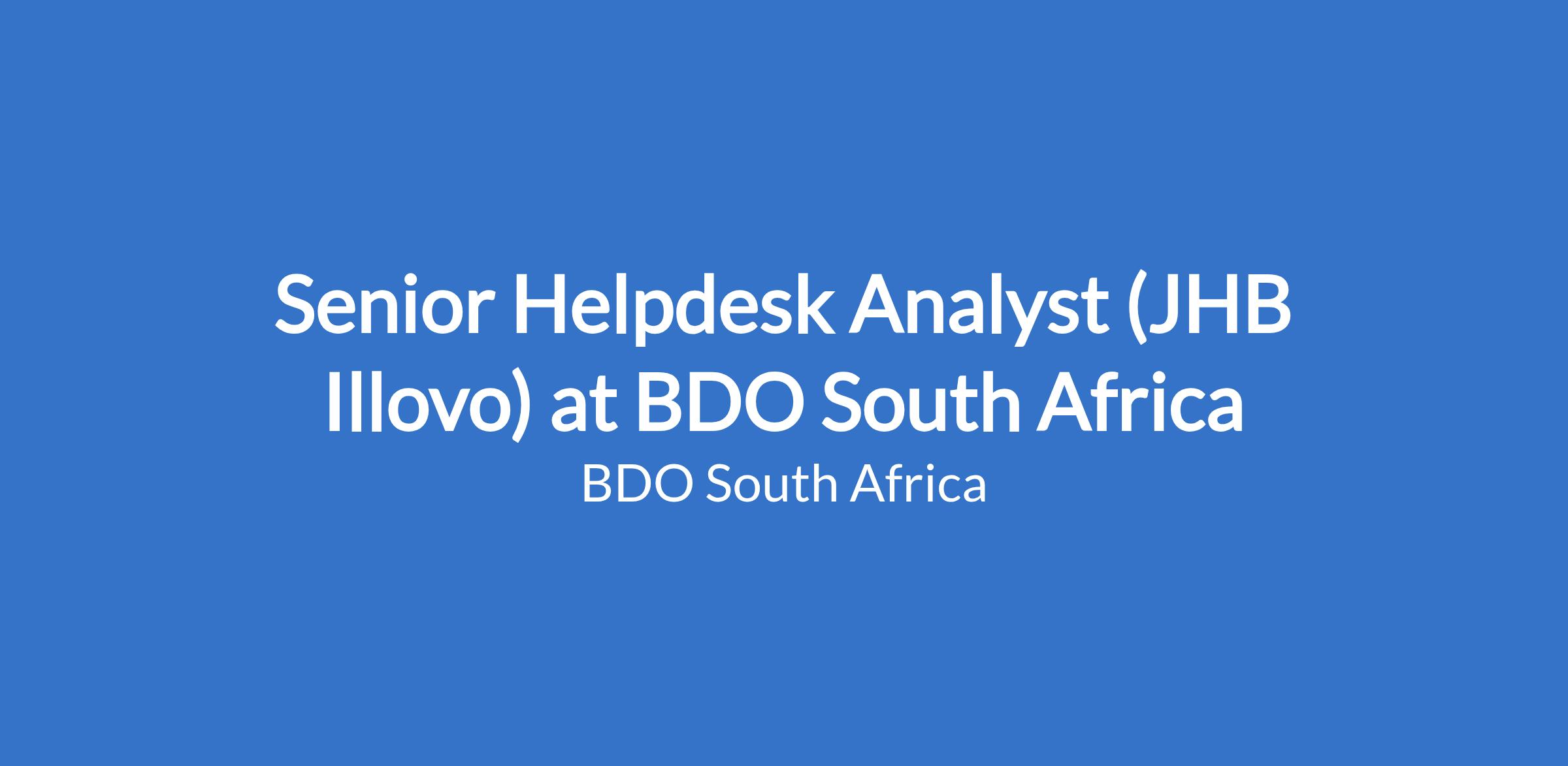 The Senior Helpdesk Analyst is responsible for delivering advanced technical support and ensuring a consistently high standard of customer service across the organisation. Serving both as the first point of contact for complex issues and the escalation point for incidents requiring deeper technical expertise, the role plays a critical part in maintaining the stability, reliability, and optimisation of ICT services. The Senior Helpdesk Analyst supports the continuous improvement of Helpdesk operations, drives efficient incident resolution, and enhances service quality. In addition, the role provides guidance and mentorship to junior analysts, promoting skills development and fostering a culture of collaboration, professionalism, and service excellence within the BDO SA IT Operations & Security team
