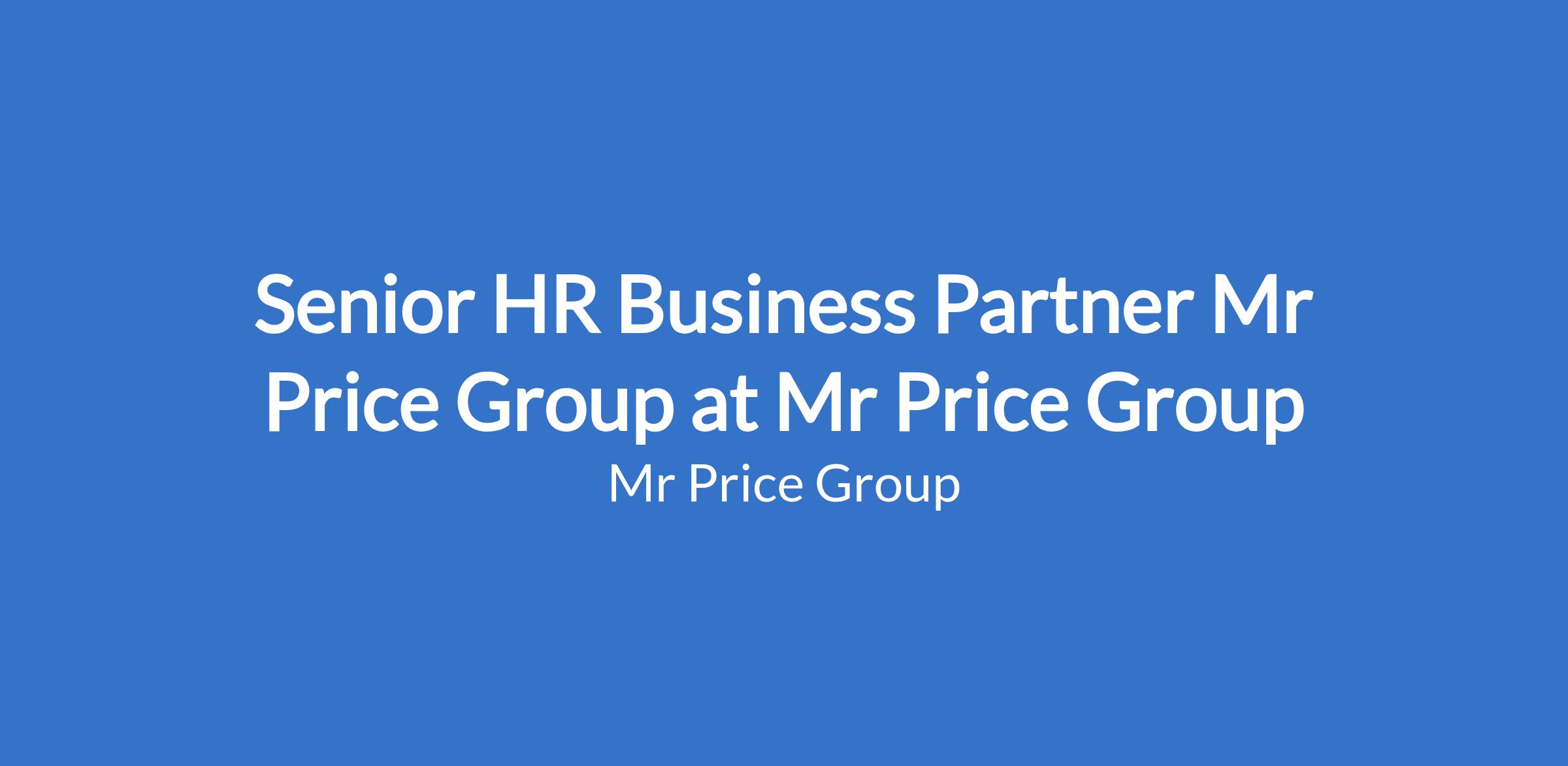 Senior HR Business Partner Mr Price Group at Mr Price Group