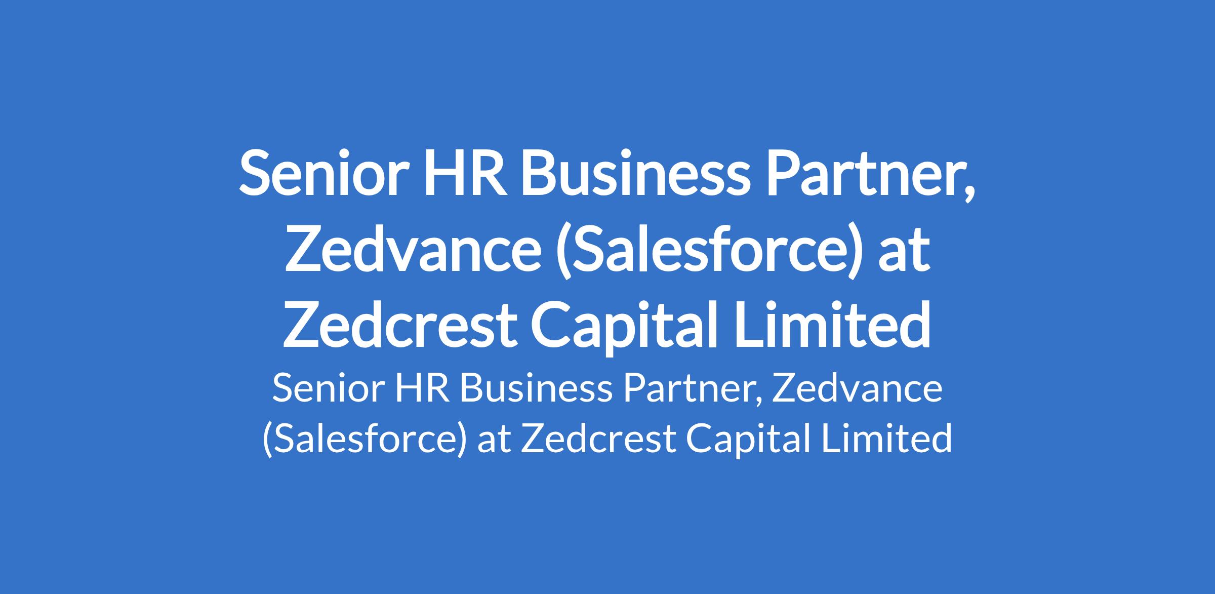 Zedcrest Capital Limited is recruiting to fill the position of: Senior HR Business Partner, Zedvance (Salesforce). The position is located in Lagos State. Interested candidates should possess a Bachelors Degree (or HND) in Human Resources, Business Administration, or a related discipline with 8 - 10 years of HR experience.