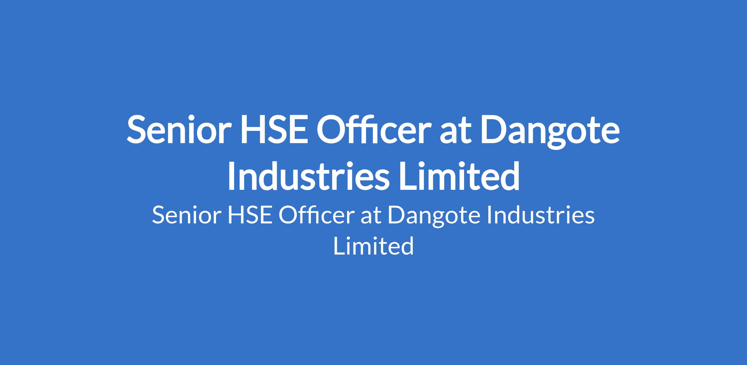 Dangote Industries Limited is recruiting to fill the position of: Senior HSE Officer. Interested candidates should possess a Bachelors Degree in Environmental Science, Occupational Health or relevant disciplines with at least six (6) years of relevant professional experience in HSE or in a similar role.