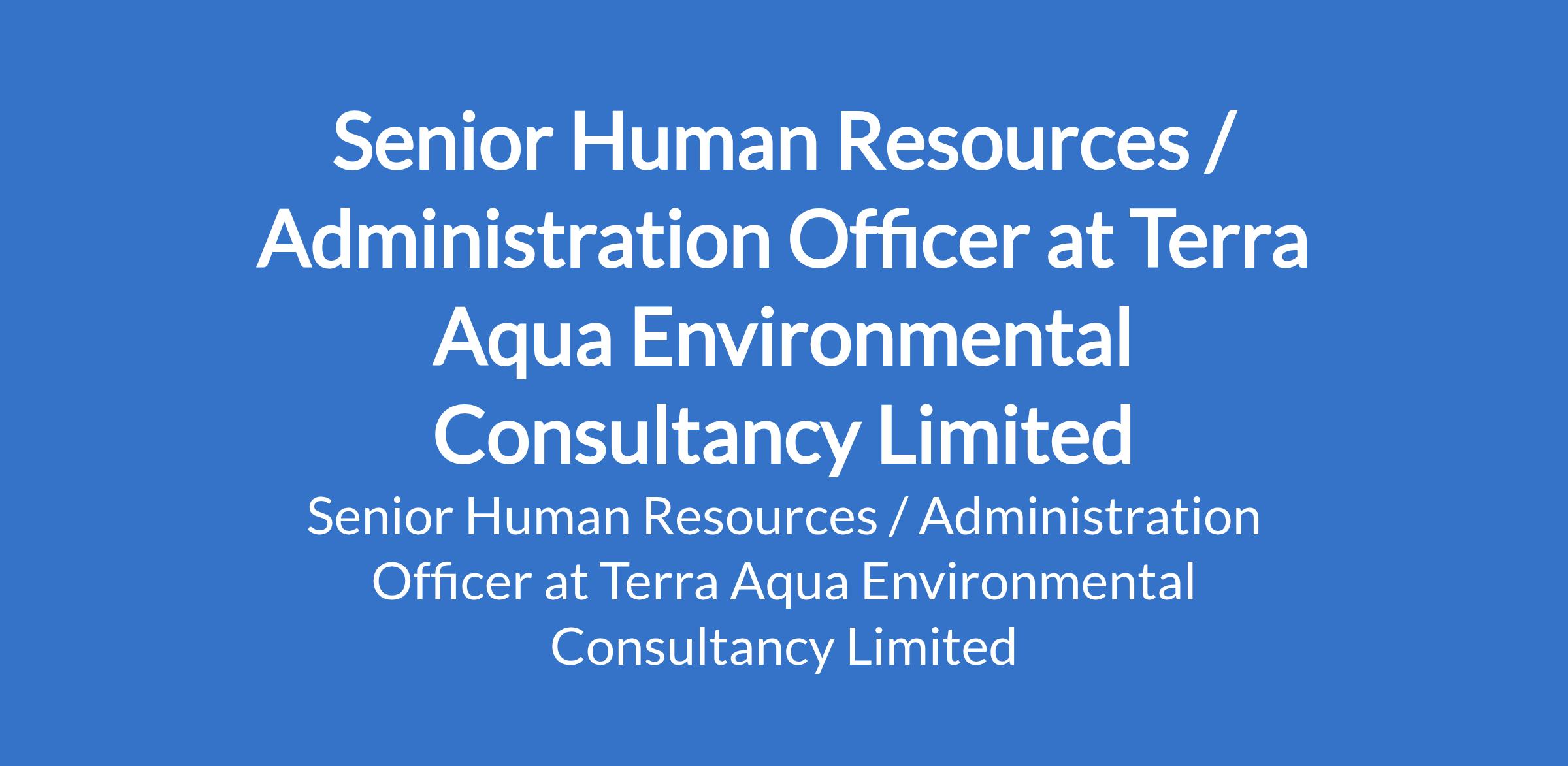 Terra Aqua Environmental Consultancy Limited is recruiting to fill the position of: Senior Human Resources / Administration Officer. The position is located in Ota, Ogun State. Interested candidates should possess a Bachelors Degree in Human Resources, Business Administration, Industrial Relations, or related field with 4 7 years progressive HR experience in Manufacturing and FMCG sectors.