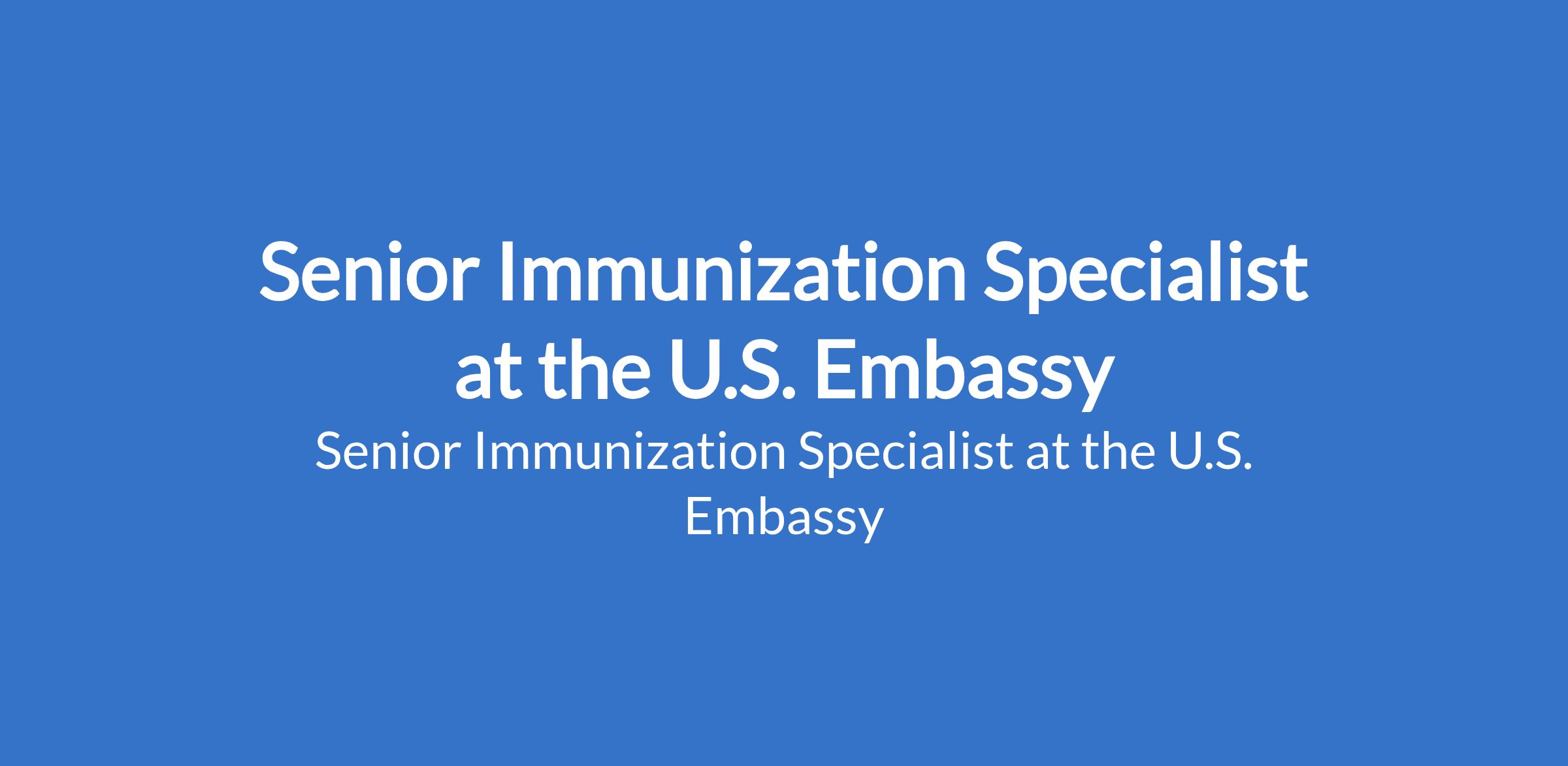 The U.S. Embassy is recruiting to fill the position of: Senior Immunization Specialist. The position is located in Abuja. Salary: USD $52,282 / per year. Interested candidates should possess a Medical Degree (MD / MBBS) with a minimum of five (5) years of mid to senior-level public health experience.