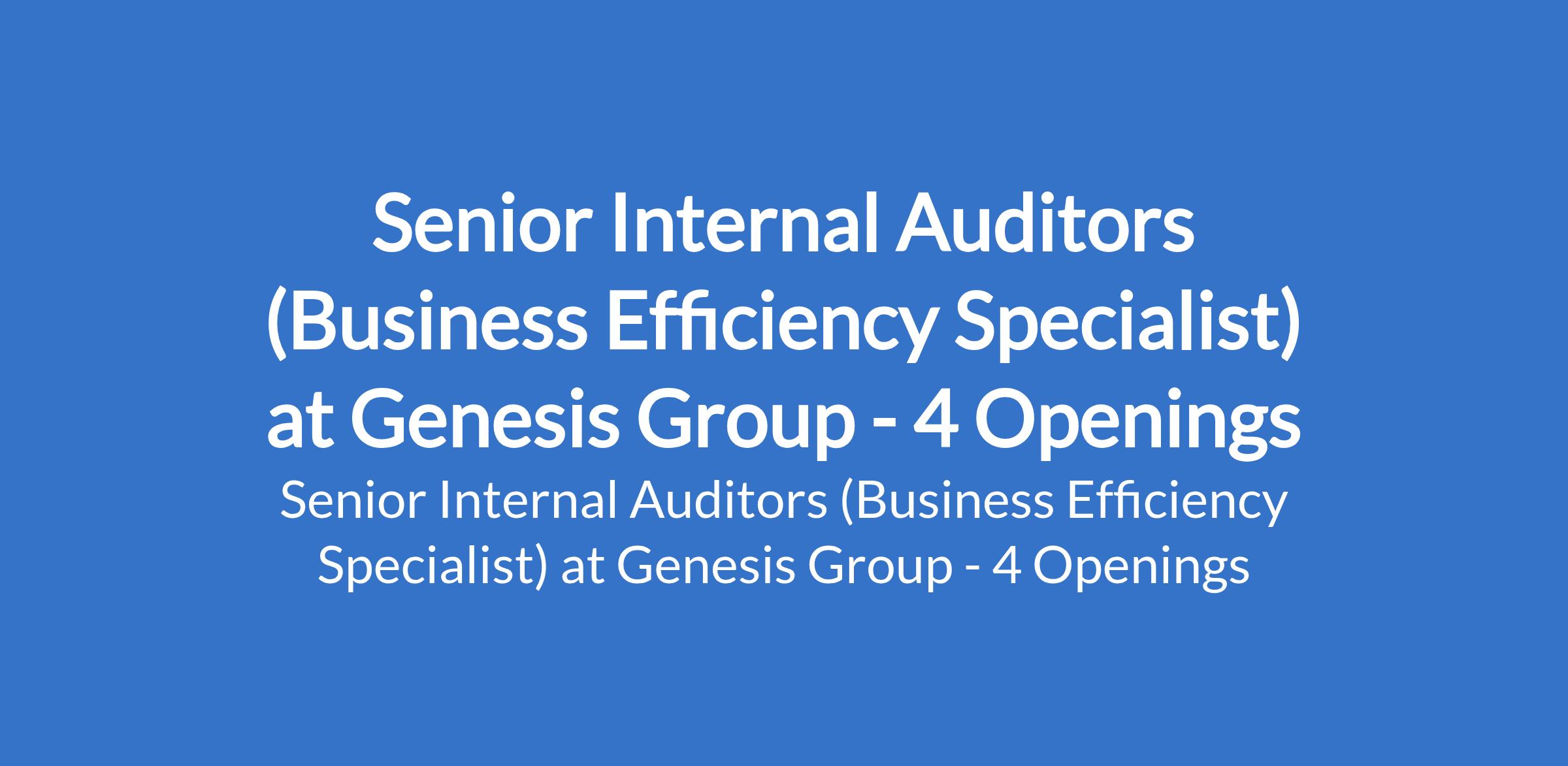 Genesis Group is recruiting to fill the position of: Senior Internal Auditor (Business Efficiency Specialist). The position is located in Port Harcourt - Rivers, Delta, Enugu, & Imo States. Interested candidates should possess aBachelors Degree in Accounting, Finance, or a related field.