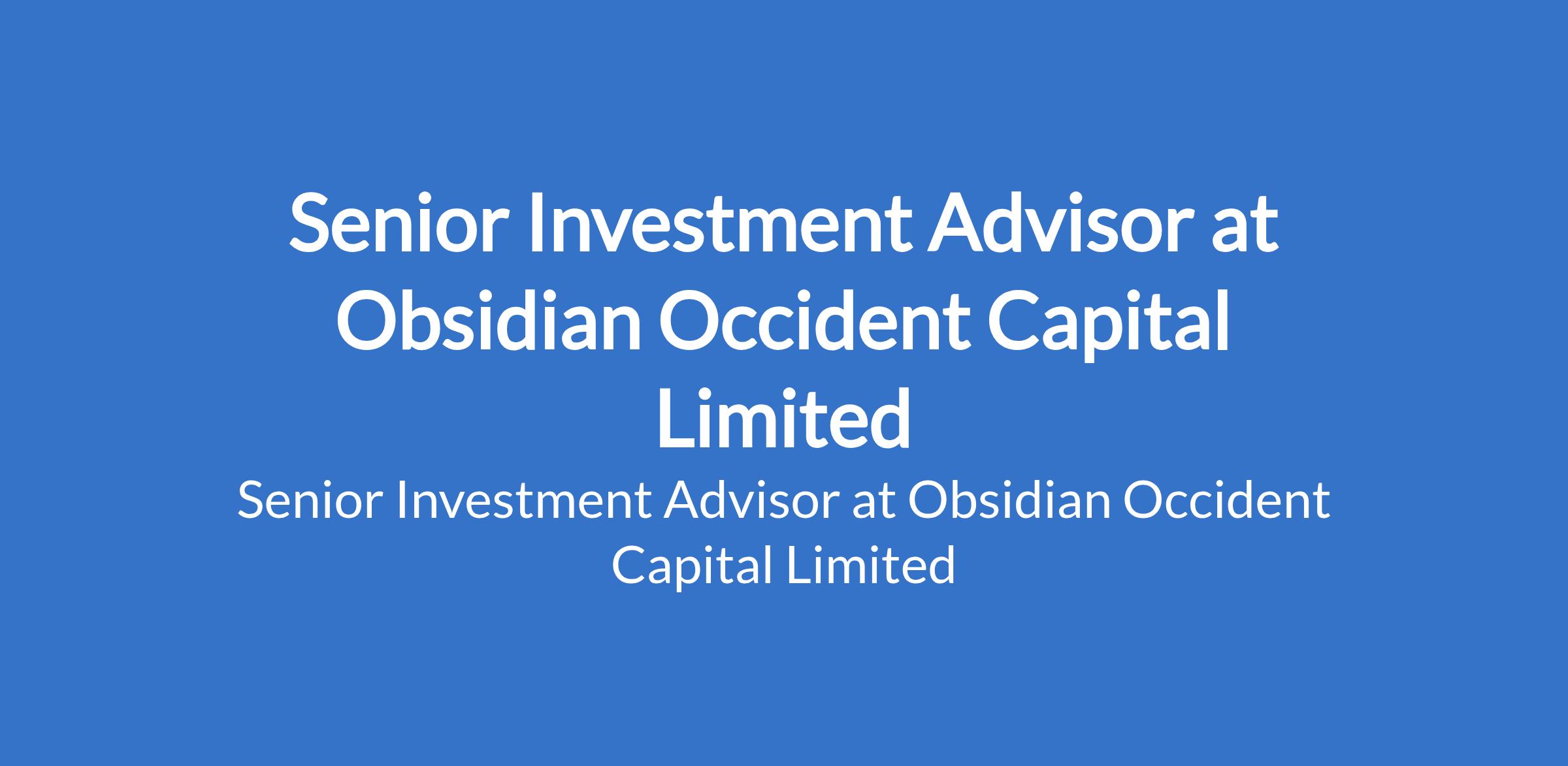 Obsidian Occident Capital Limited is recruiting to fill the position of: Senior Investment Advisor. The position is located in Ikoyi, Lagos State. Interested candidates should possess a BSc. Degree in Finance, Economics, or related field; MBA, CFA, CIMA, or CFP designation or equivalent qualification is strongly preferred.