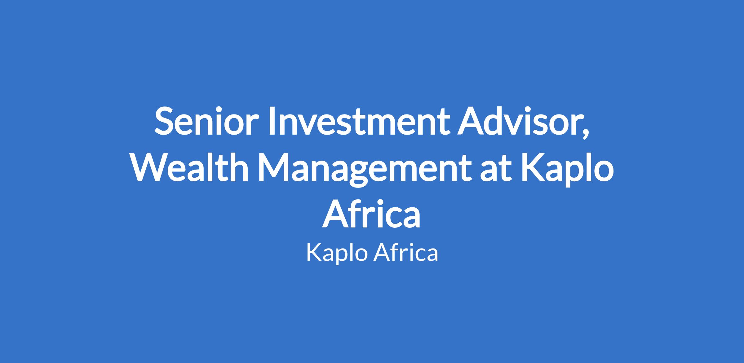 Senior Investment Advisor, Wealth Management at Kaplo Africa