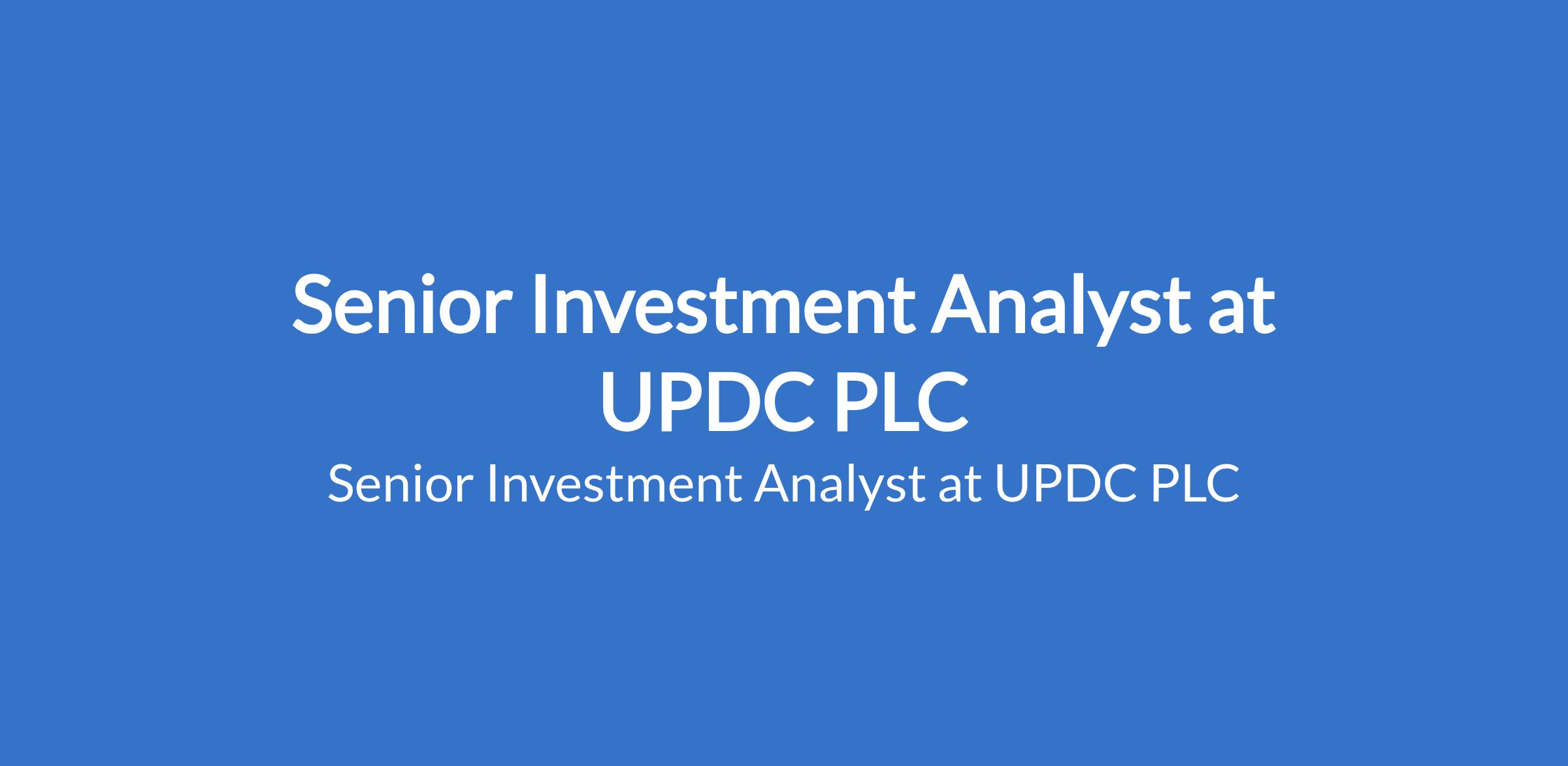 UPDC PLC is recruiting to fill the position of: Senior Investment Analyst. The position is located in CMS, Lagos State. Interested candidates should possess a Bachelors Degree in a numerate and highly analytical field, including Finance, Economics, Accounting, or Engineering with 5+ years of work experience in a detail-oriented financial role such as real estate, investment banking, corporate finance, private equity, finance, or strategy consulting.