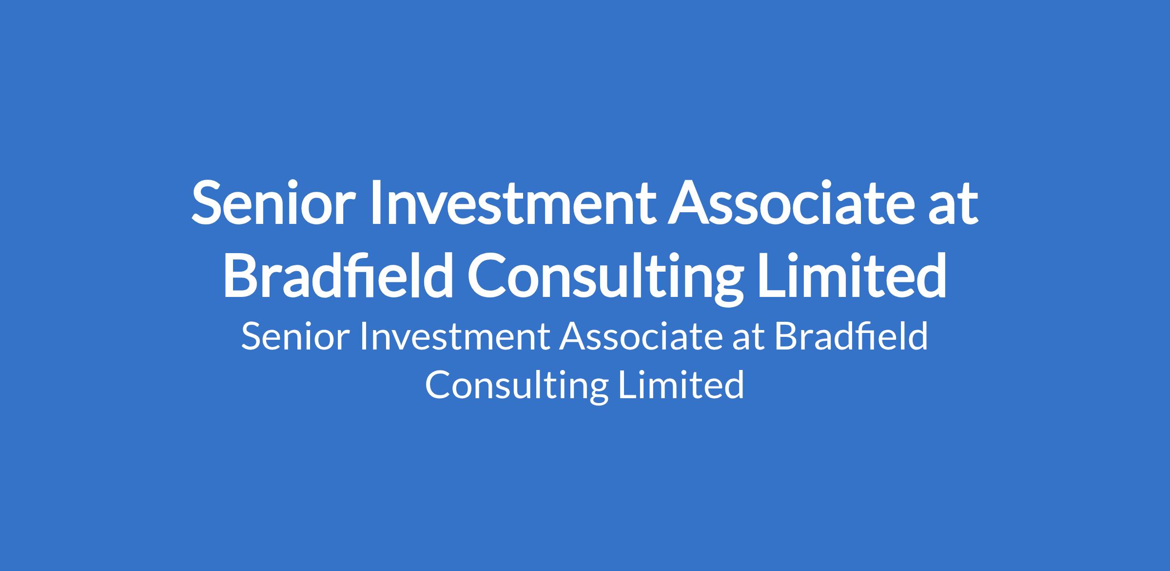 Bradfield Consulting Limited is recruiting to fill the position of: Senior Investment Associate. The position is located in Victoria Island, Lagos State. Salary: N800,000 monthly. Interested candidates should possess a Bachelors Degree in Finance, Economics, Business, or a related discipline; an MBA and/or CFA qualification is highly preferred; with a minimum of 7 years experience in investment management, private wealth management, family office, or asset management.