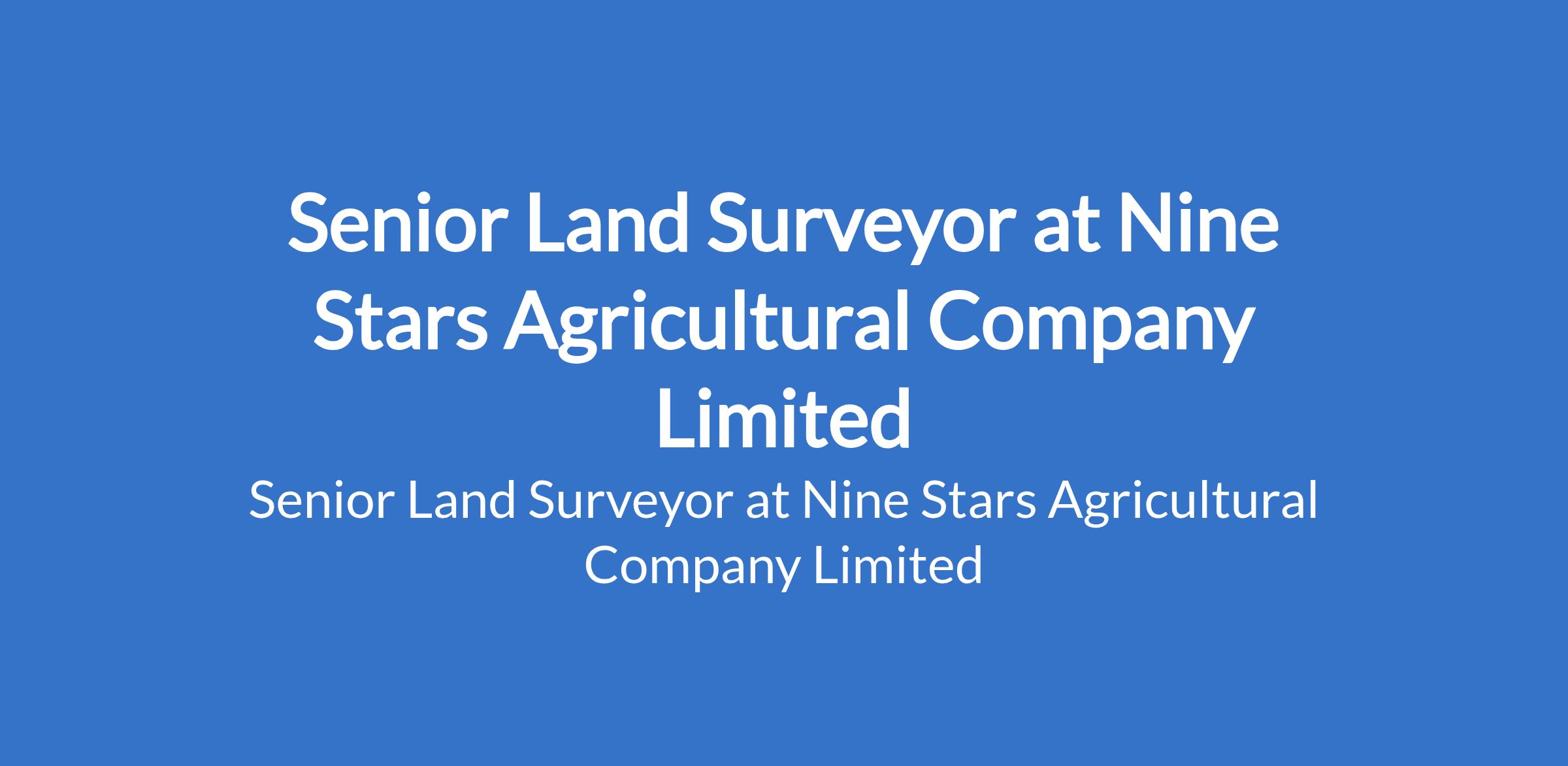 Nine Stars Agricultural Company Limited is recruiting to fill the position of: Senior Land Surveyor. The position is located in Ogere-Remo, Ogun State. Salary: N300,000 N600,000 per month. Interested candidates should possess a Bachelors Degree or HND in Surveying, Geomatics, or a related field with 1215 years of proven experience in land surveying.