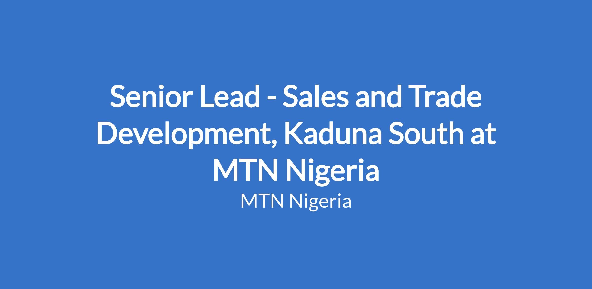 Senior Lead - Sales and Trade Development, Kaduna South at MTN Nigeria