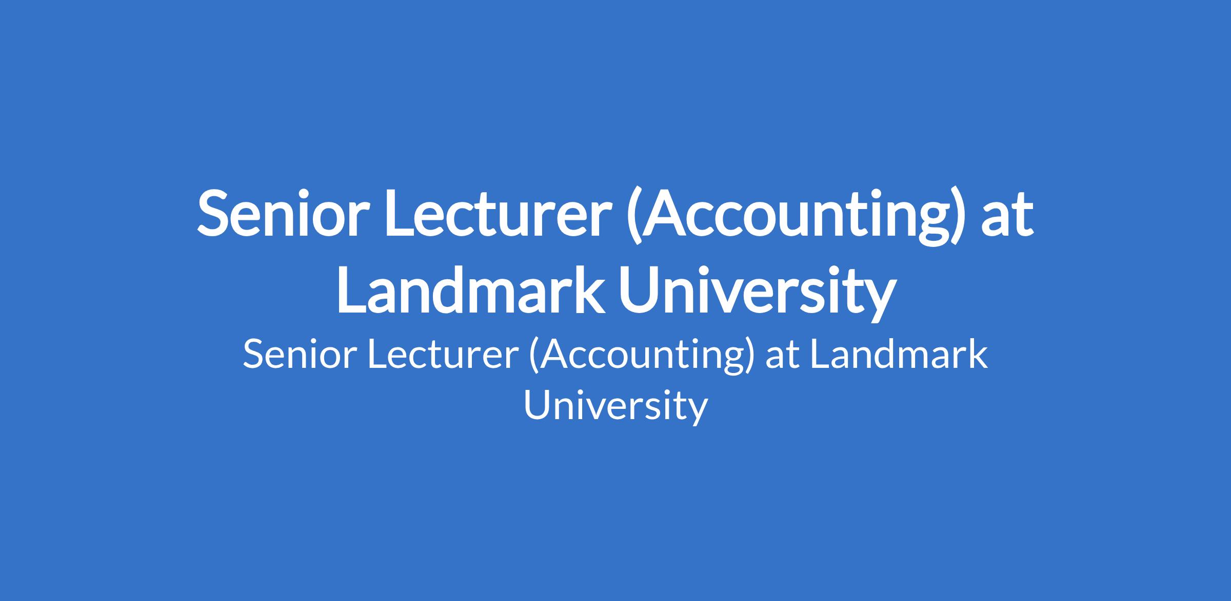 Landmark University invites applications from suitable candidates to fill the position of: Senior Lecturer (Accounting). The position is located in Omu-Aran, Kwara State. Interested candidates should possess a Ph.D. Degree with specialization in the discipline applied for with evidence of academic leadership in terms of publications, project design execution and monitoring, administrative leadership, etc. and at least 7 years of post-qualification, full time relevant teaching and research experience.