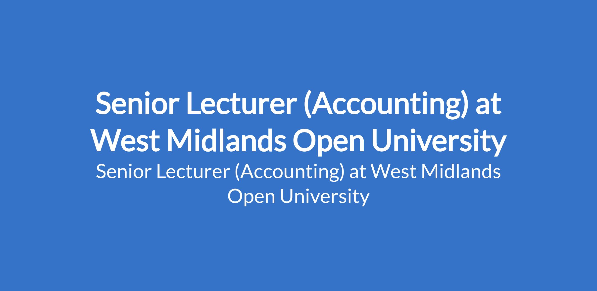 West Midlands Open University invites applications from suitable candidates to fill the position of: Senior Lecturer (Accounting). The position is located in Ikeja, Lagos State. Interested candidates should possess a Ph.D Degree with at least three (3) years as Lecturer I.