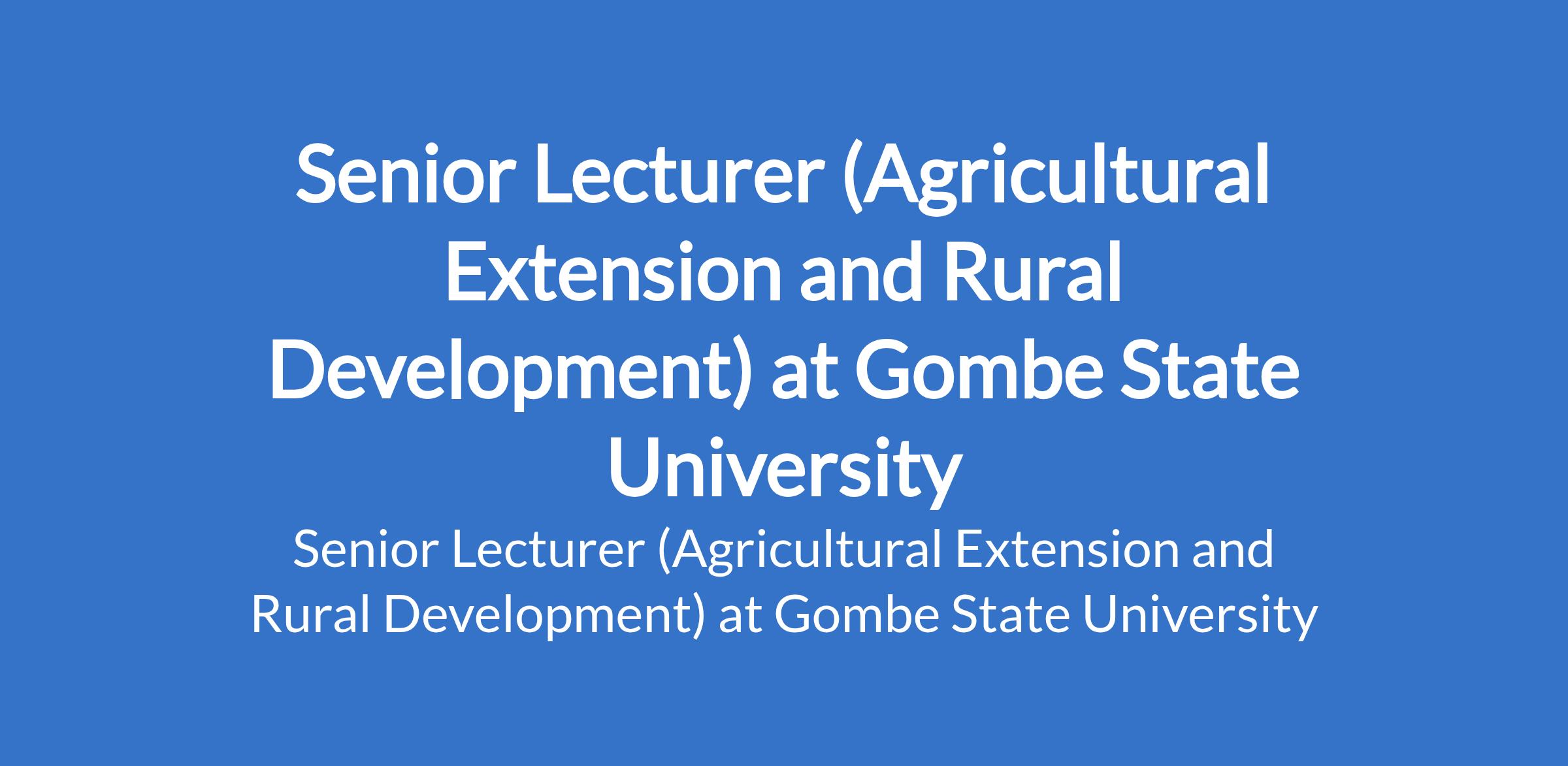 Gombe State University invites applications from suitable candidates to fill the position of: Senior Lecturer (Agricultural Extension and Rural Development). The position is located in Tudun - Wada, Gombe State. Interested candidates should possess a Ph.D Degree in a relevant discipline, minimum of three years as Lecturer I or equivalent, 7 - 9 years of teaching experience; with at least 35 publication points.