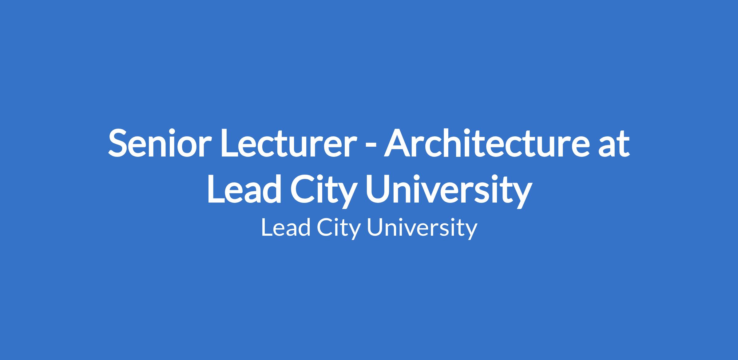 Senior Lecturer - Architecture at Lead City University