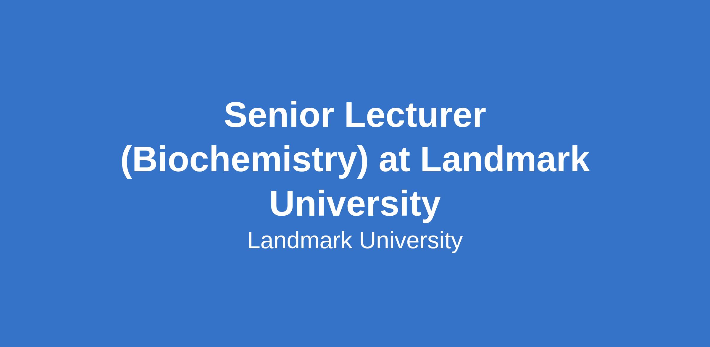 Senior Lecturer (Biochemistry) at Landmark University