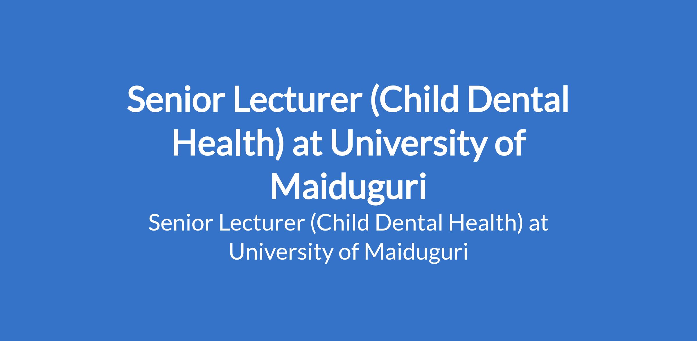 University of Maiduguri invites applications from suitable candidates to fill the position of: Senior Lecturer (Child Dental Health). The position is located in Borno State. Interested candidates must be a Lecturer I (for at least three years) with PhD or its equivalent, at least five (5) years teaching experience and postgraduate supervision exposure and at least 32 publication points with 12 obtained since last promotion.