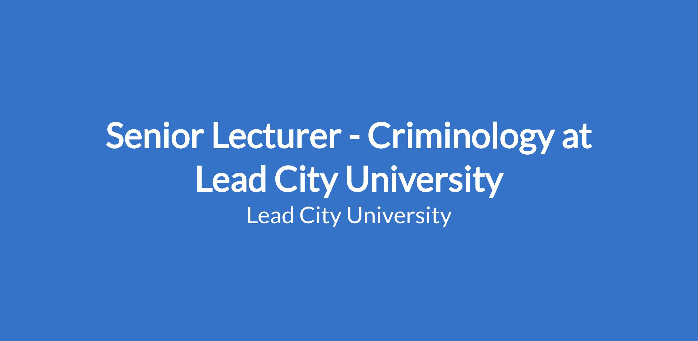 Senior Lecturer - Criminology at Lead City University