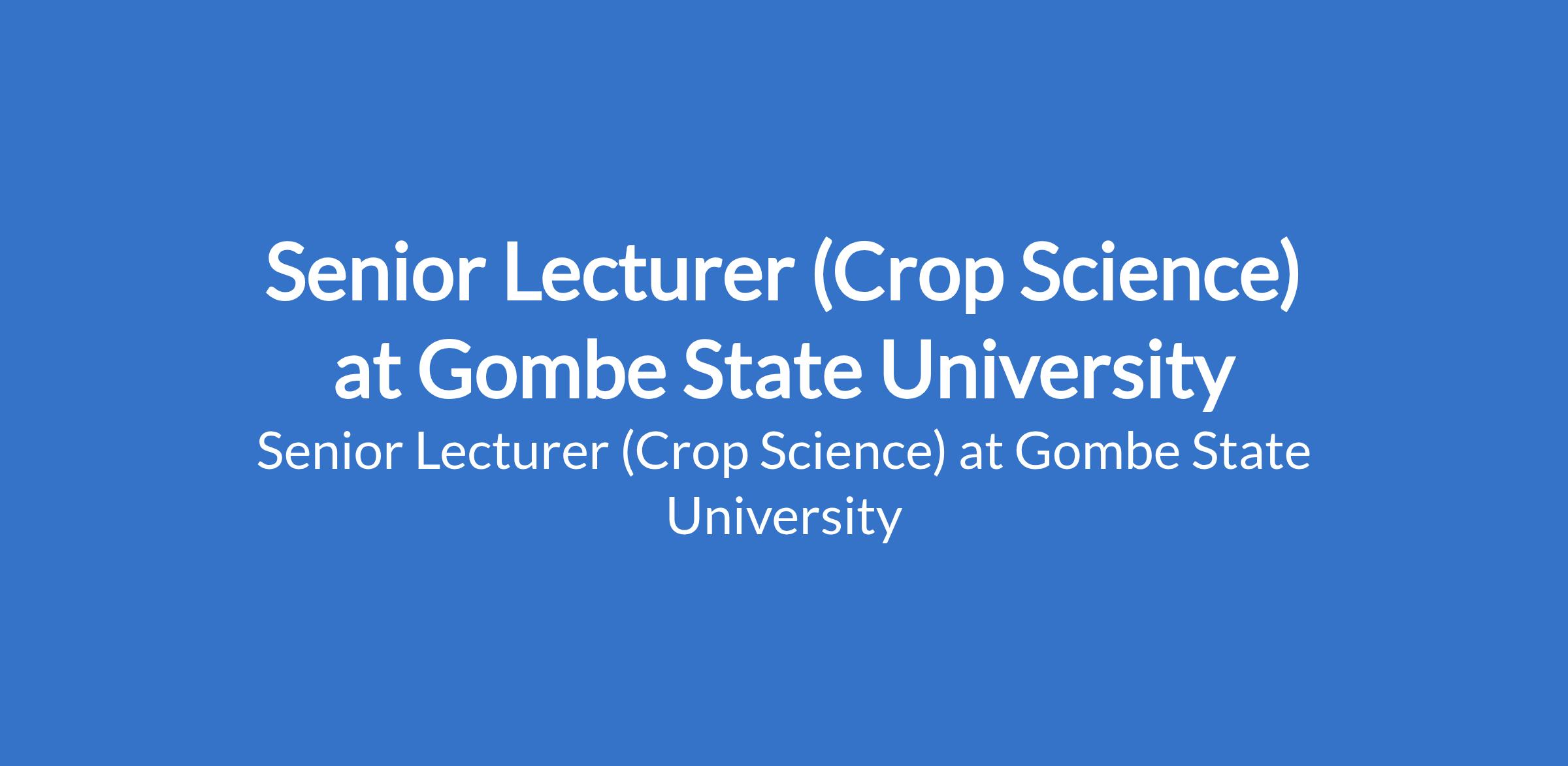 Gombe State University invites applications from suitable candidates to fill the position of: Senior Lecturer (Crop Science). The position is located in Tudun - Wada, Gombe State. Interested candidates should possess a Ph.D Degree in a relevant discipline, minimum of three years as Lecturer I or equivalent, 7 - 9 years of teaching experience; with at least 35 publication points.