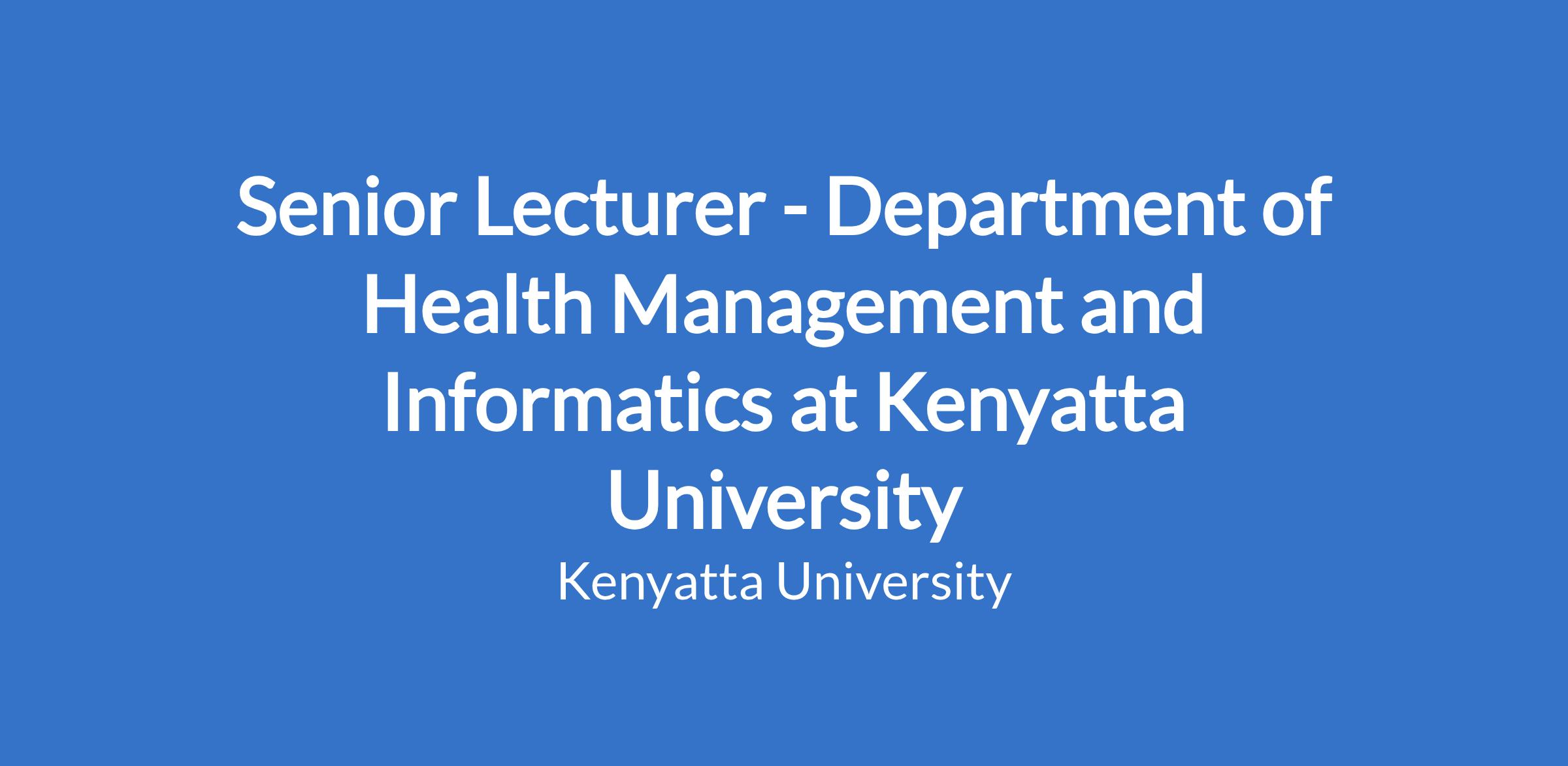 Senior Lecturer - Department of Health Management and Informatics at Kenyatta University