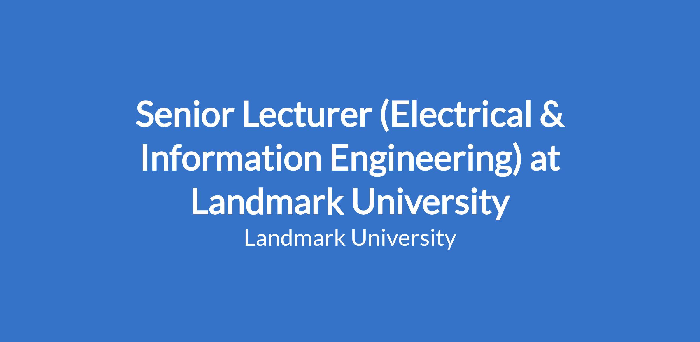 Senior Lecturer (Electrical & Information Engineering) at Landmark University
