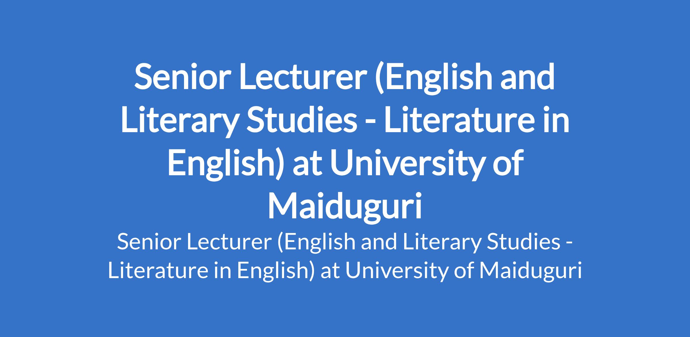 University of Maiduguri invites applications from suitable candidates to fill the position of: Senior Lecturer (English and Literary Studies - Literature in English). The position is located in Borno State. Interested candidates must be a Lecturer I (for at least three years) with PhD or its equivalent, at least five (5) years teaching experience and postgraduate supervision exposure and at least 32 publication points with 12 obtained since last promotion.