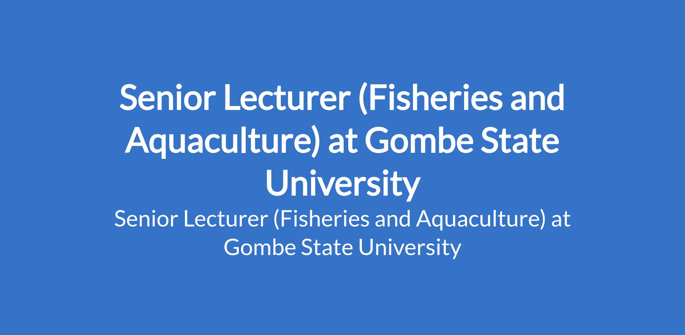 Gombe State University invites applications from suitable candidates to fill the position of: Senior Lecturer (Fisheries and Aquaculture). The position is located in Tudun - Wada, Gombe State. Interested candidates should possess a Ph.D Degree in a relevant discipline, minimum of three years as Lecturer I or equivalent, 7 - 9 years of teaching experience; with at least 35 publication points.