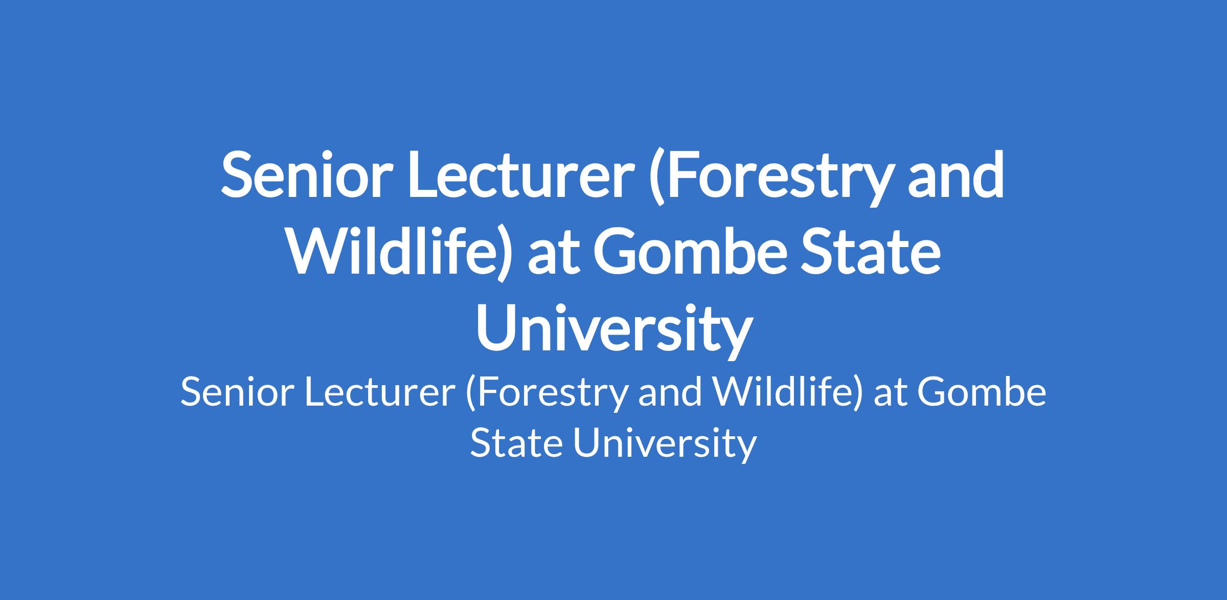 Gombe State University invites applications from suitable candidates to fill the position of: Senior Lecturer (Forestry and Wildlife). The position is located in Tudun - Wada, Gombe State. Interested candidates should possess a Ph.D Degree in a relevant discipline, minimum of three years as Lecturer I or equivalent, 7 - 9 years of teaching experience; with at least 35 publication points.