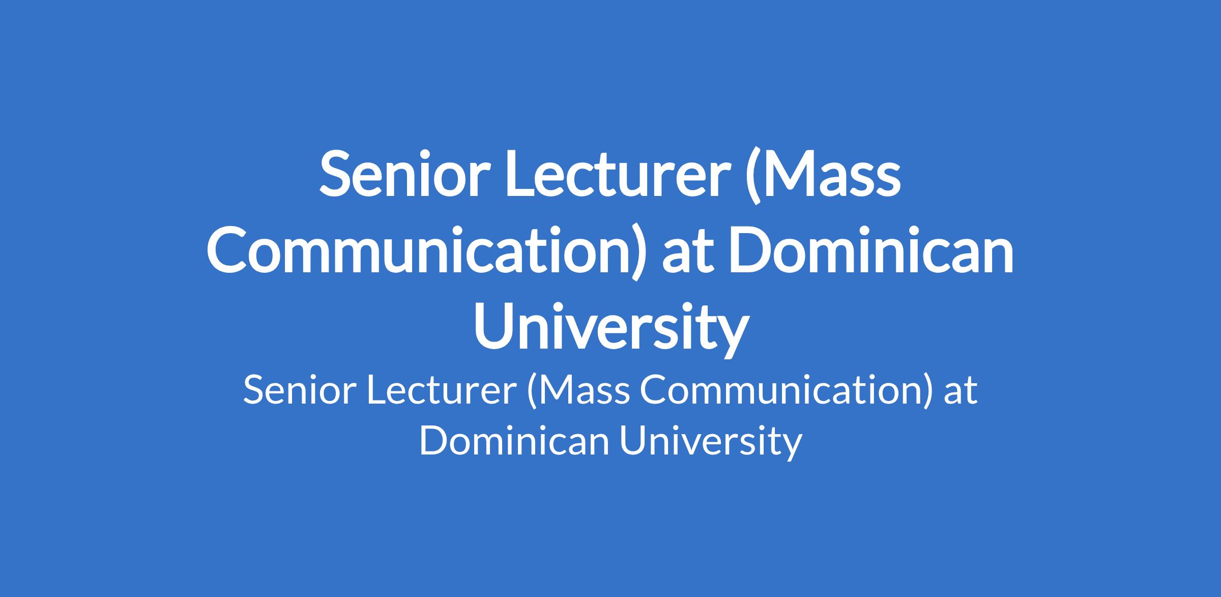 Dominican University is recruiting to fill the position of: Senior Lecturer (Mass Communication). The position is located in Ibadan, Oyo State. Interested candidates should possess relevant qualifications and experience.