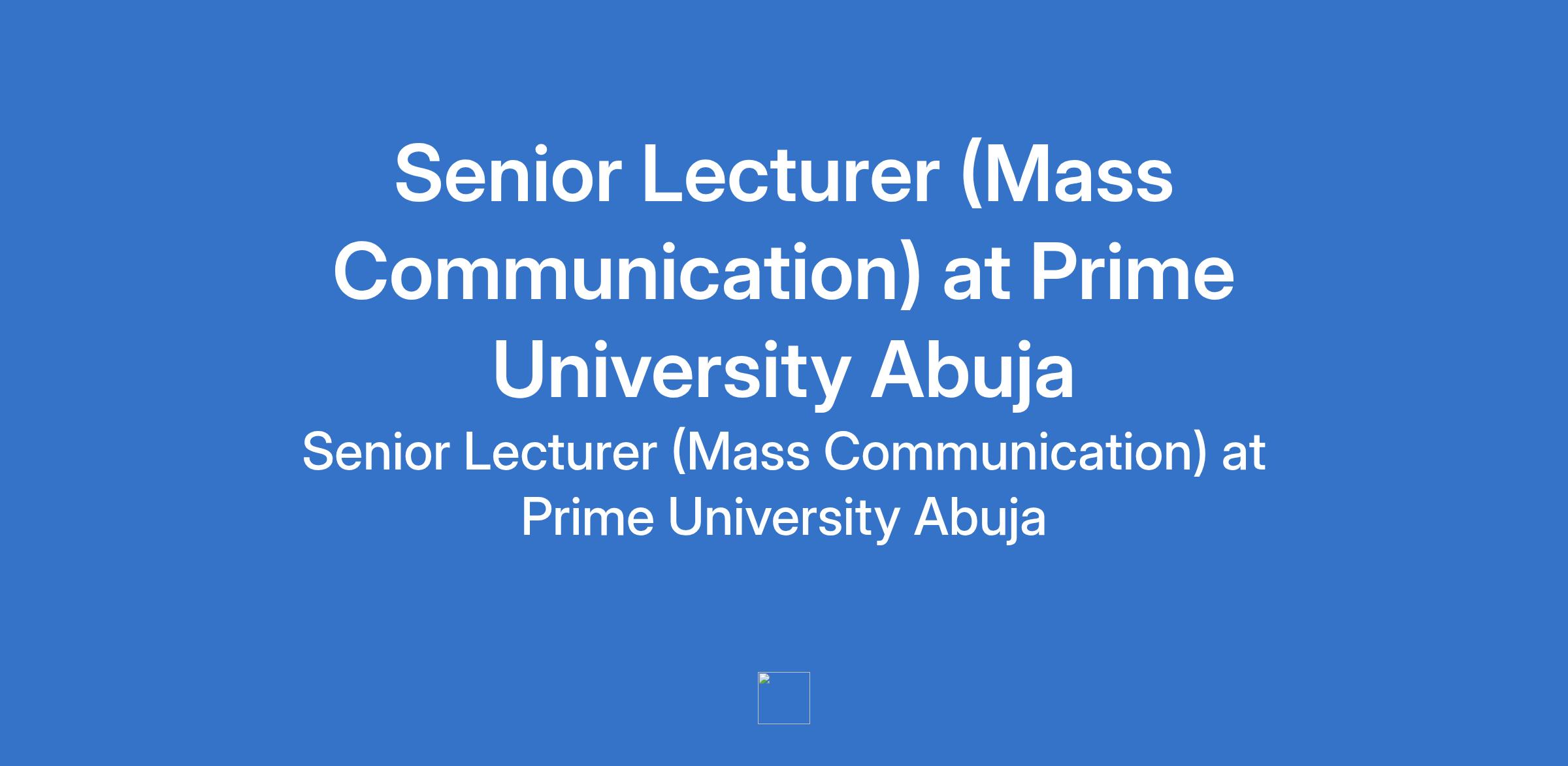 Prime University Abuja is recruiting to fill the position of: Senior Lecturer (Mass Communication). The position is located in Abuja (FCT). Interested candidates should possess a PhD in Mass Communication or a closely related discipline with a minimum of six (6) years post-PhD teaching and research experience at the university level or equivalent.