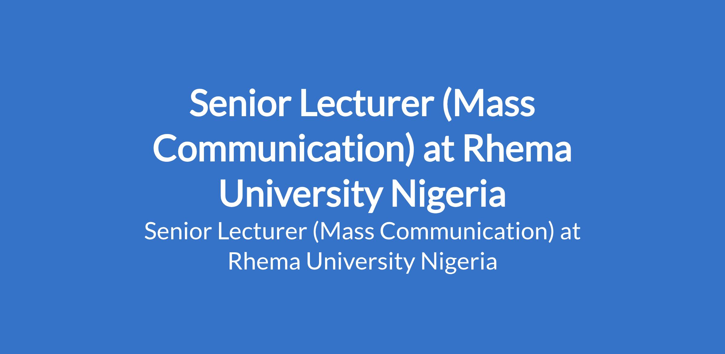 Rhema University Nigeria invites applications from suitably qualified candidates for the position of: Senior Lecturer (Mass Communication). The position is located in Aba, Abia State. Interested candidates should possess a Ph.D Degree with 5 years post qualification experience in Nursing Science, and acceptable number of publications.