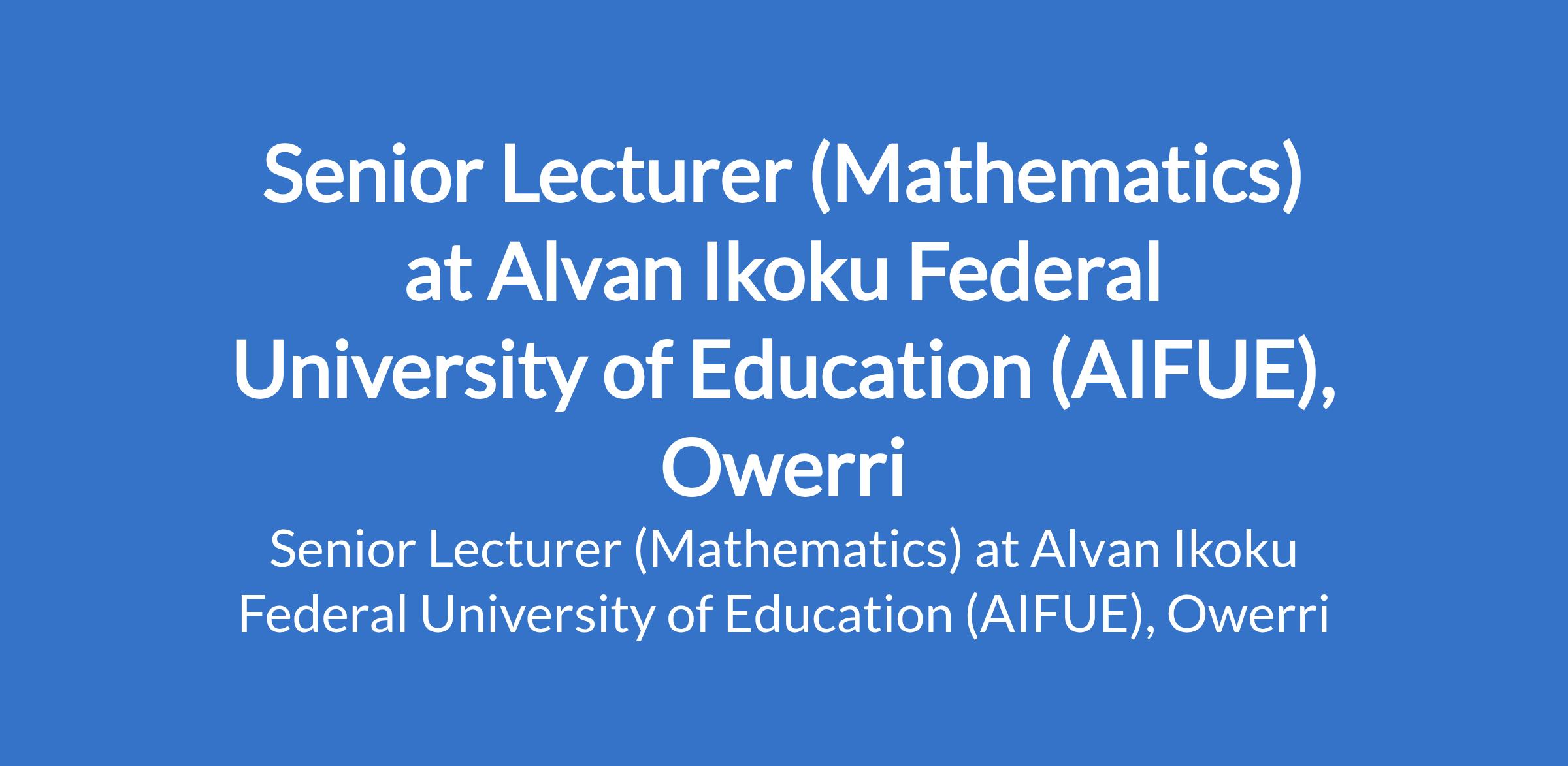 Alvan Ikoku Federal University of Education (AIFUE), Owerri invites applications from suitably qualified candidates for the position of: Senior Lecturer (Mathematics). The position is located in Imo State. Interested candidates should possess a PhD with not less than nine (9) years of teaching and research experience, and not less than three (3) years as a Lecturer I in a recognized university.