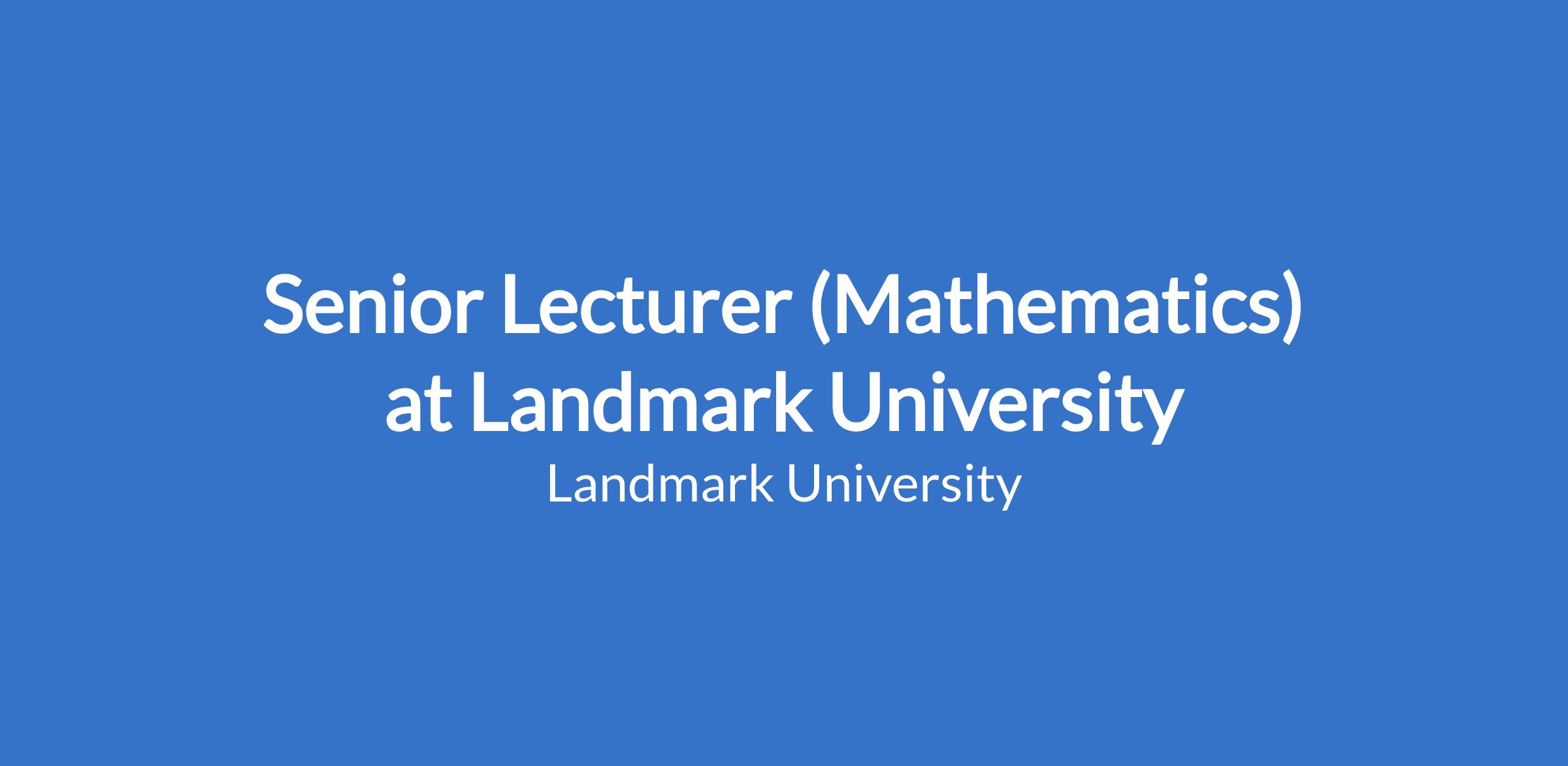 Senior Lecturer (Mathematics) at Landmark University