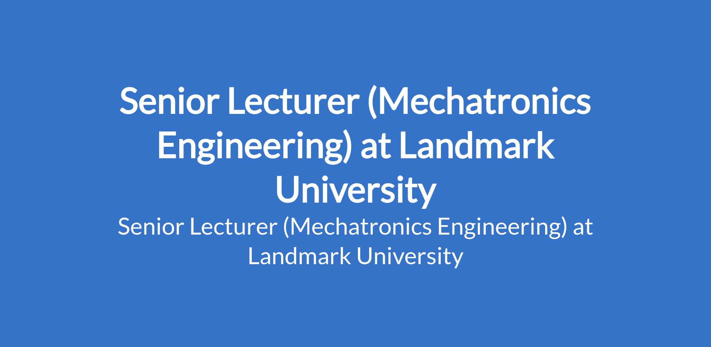 Landmark University invites applications from suitable candidates to fill the position of: Senior Lecturer (Mechatronics Engineering). The position is located in Omu-Aran, Kwara State. Interested candidates should possess a Ph.D. Degree with specialization in the discipline applied for with evidence of academic leadership in terms of publications, project design execution and monitoring, administrative leadership, etc. with at least 7 years of post-qualification, fulltime, relevant teaching and research experience.