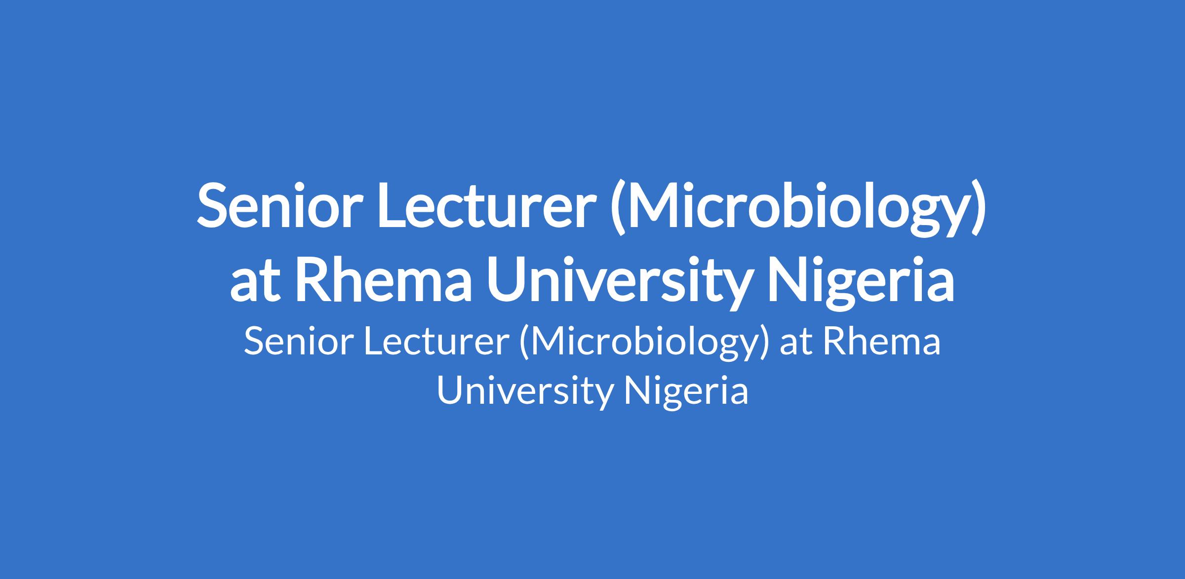 Rhema University Nigeria invites applications from suitably qualified candidates for the position of: Senior Lecturer (Microbiology). The position is located in Aba, Abia State. Interested candidates should possess a Ph.D Degree with 5 years post qualification experience and acceptable number of publications.