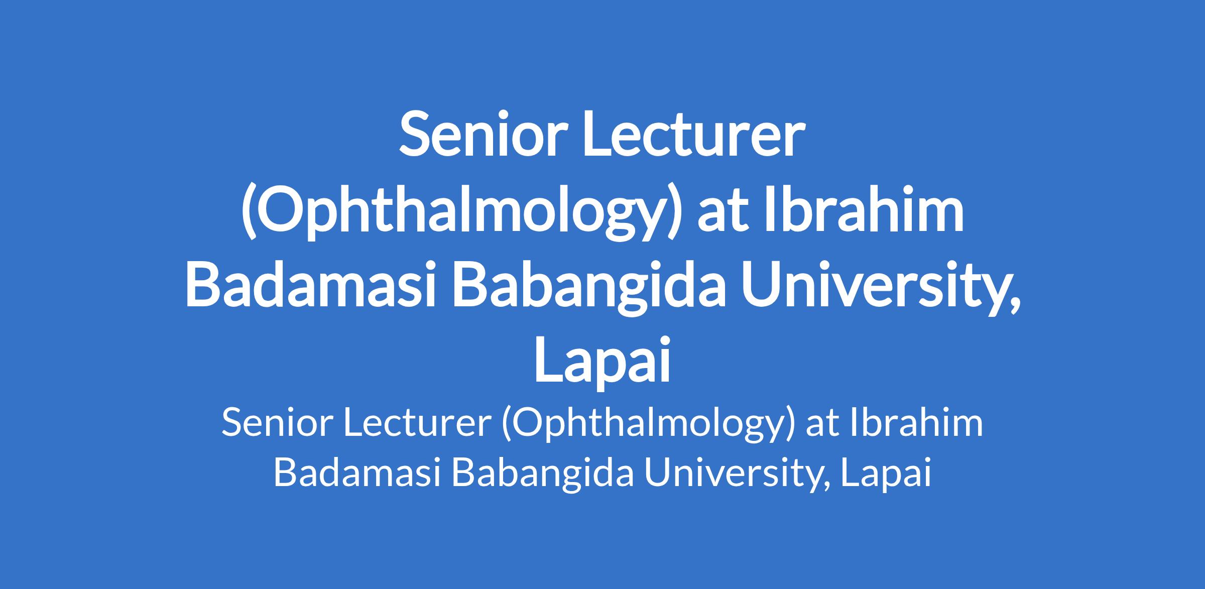 Ibrahim Badamasi Babangida University, Lapai invites applications from suitably qualified candidates to fill the position of: Senior Lecturer (Ophthalmology). The position is located in Niger State. Interested candidates should possess an M.B.B.S Degree from recognized Universities with PhD, Fellowship of the National Postgraduate Medical College of Nigeria or its equivalent in the relevant specialty/sub specialty with at least 6 years relevant experience.