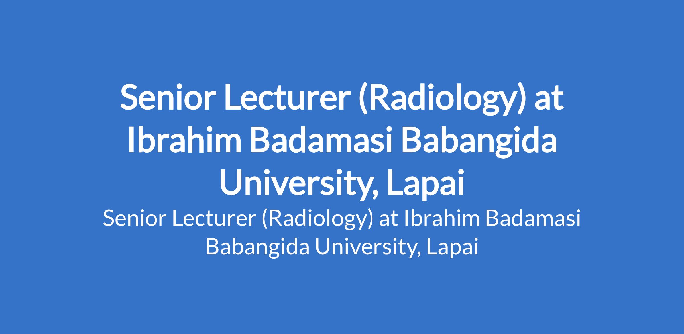 Ibrahim Badamasi Babangida University, Lapai invites applications from suitably qualified candidates to fill the position of: Senior Lecturer (Radiology). The position is located in Niger State. Interested candidates should be holders of M.B.B.S Degree from recognized Universities with PhD, Fellowship of the National Postgraduate Medical College of Nigeria or its equivalent in the relevant specialty/sub specialty with at least 6 years relevant experience.