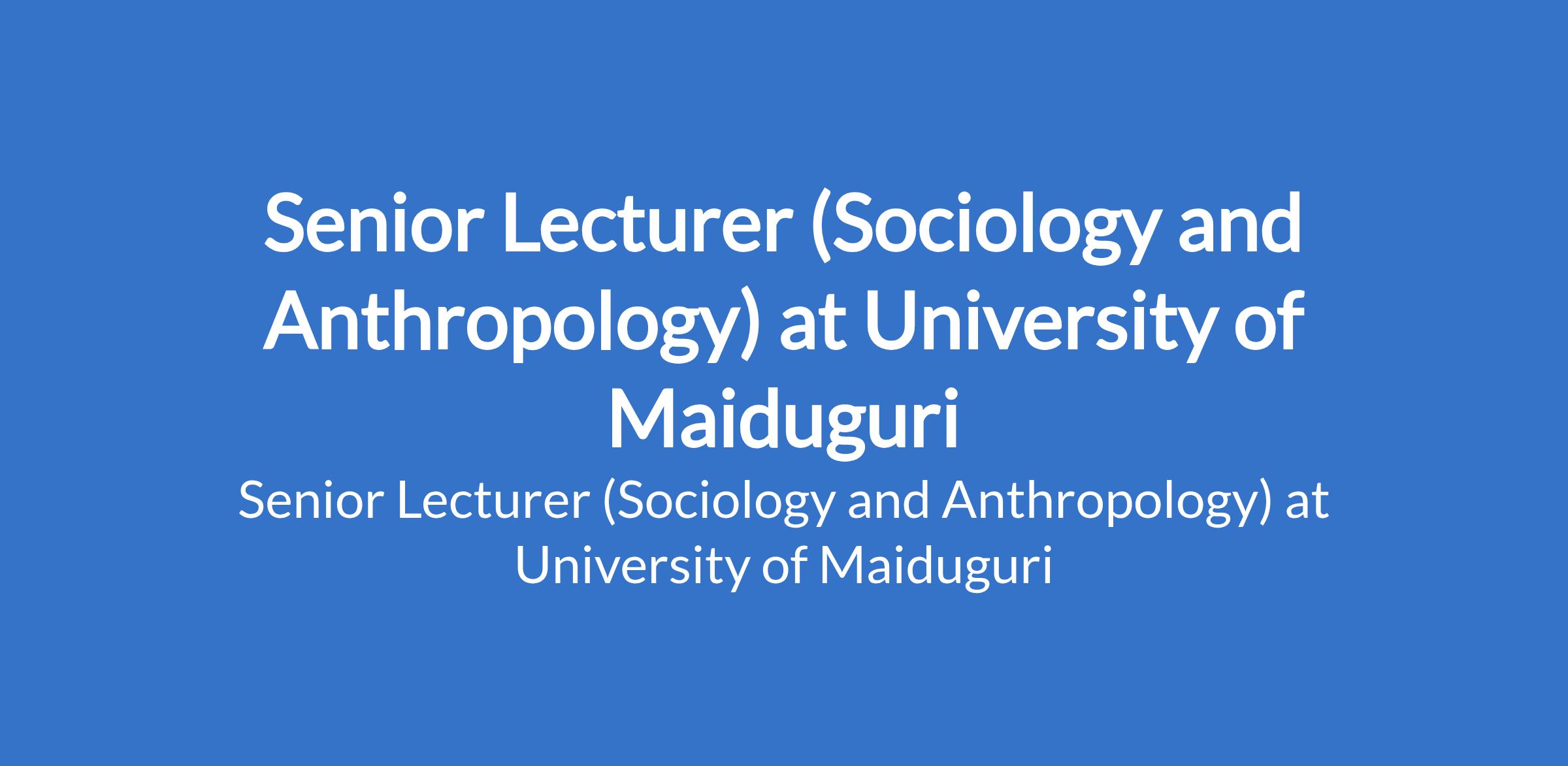 University of Maiduguri invites applications from suitable candidates to fill the position of: Senior Lecturer (Sociology and Anthropology). The position is located in Borno State. Interested candidates must be a Lecturer I (for at least three years) with PhD or its equivalent, at least five (5) years teaching experience and postgraduate supervision exposure and at least 32 publication points with 12 obtained since last promotion.