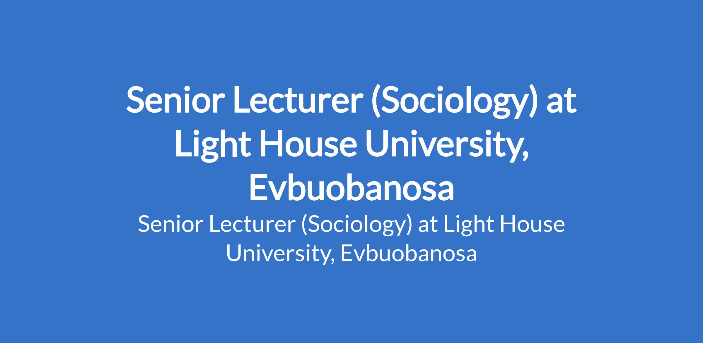 Light House University, Evbuobanosa invites applications from suitably qualified candidates to fill the position of: Senior Lecturer (Sociology). The position is located in Edo State State. Interested Candidates should possess a Ph.D Degree in the relevant field, a scopus H-index of 2; leadership experience with proofs and supervision of UG and PG student(s).