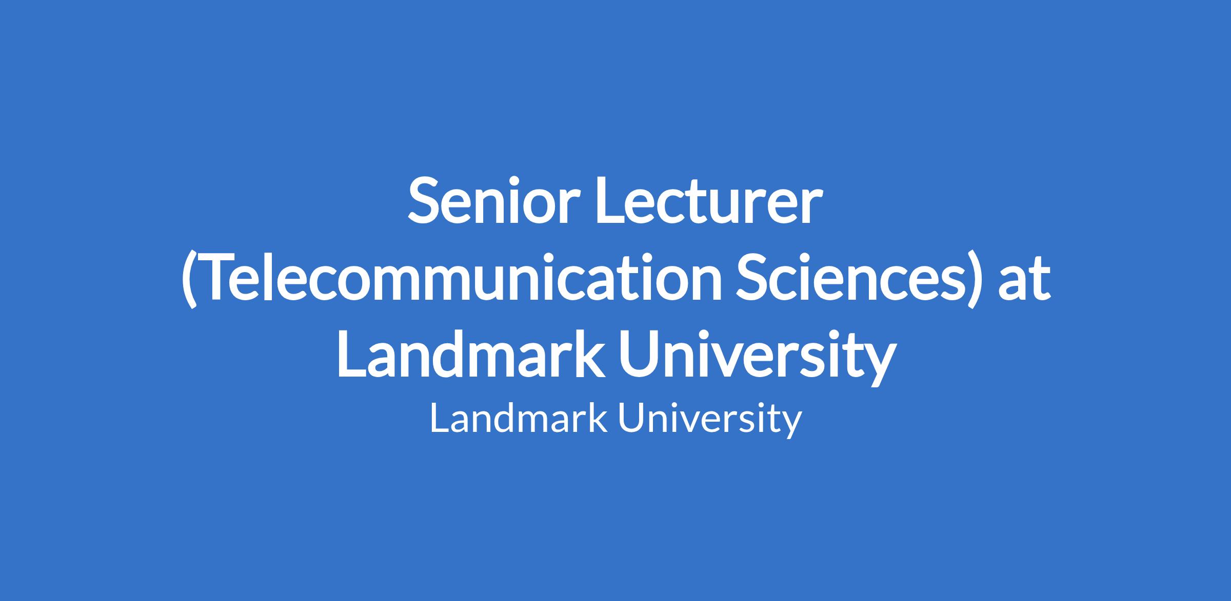 Senior Lecturer (Telecommunication Sciences) at Landmark University