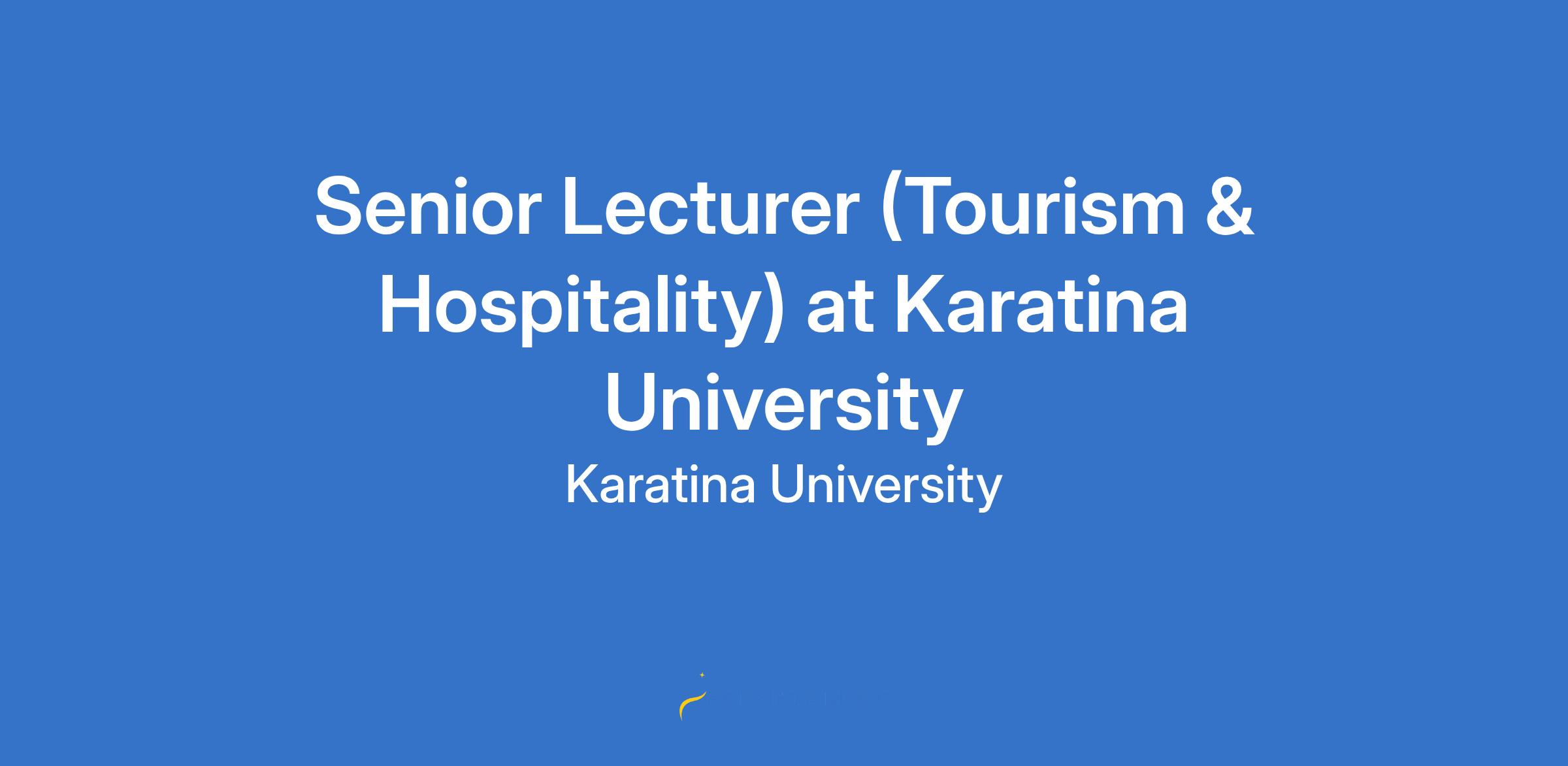 Senior Lecturer (Tourism & Hospitality) at Karatina University