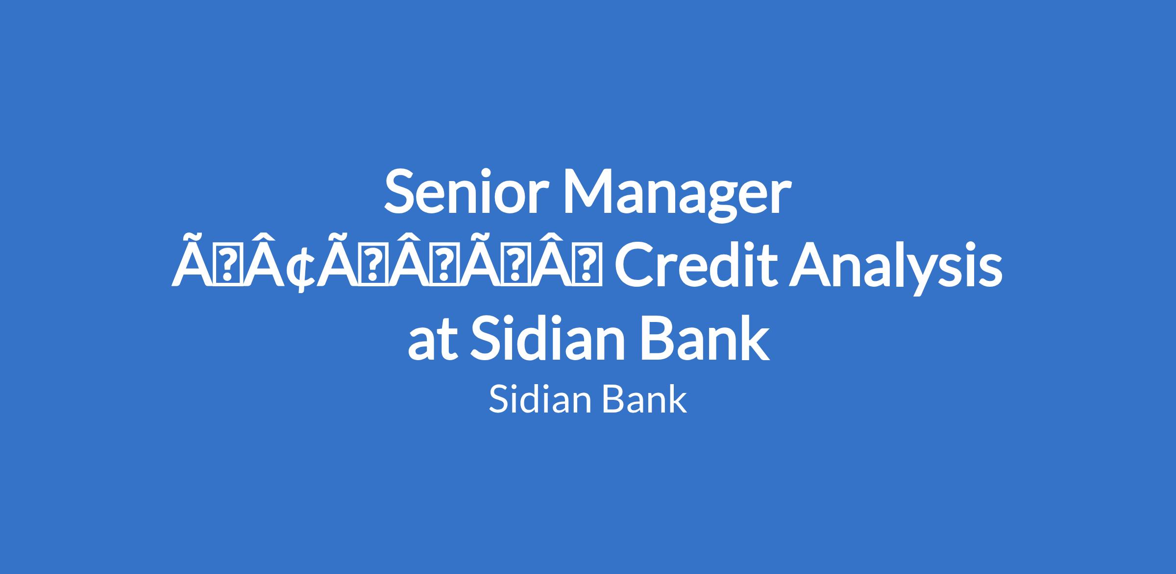Senior Manager âÃÂàCredit Analysis at Sidian Bank