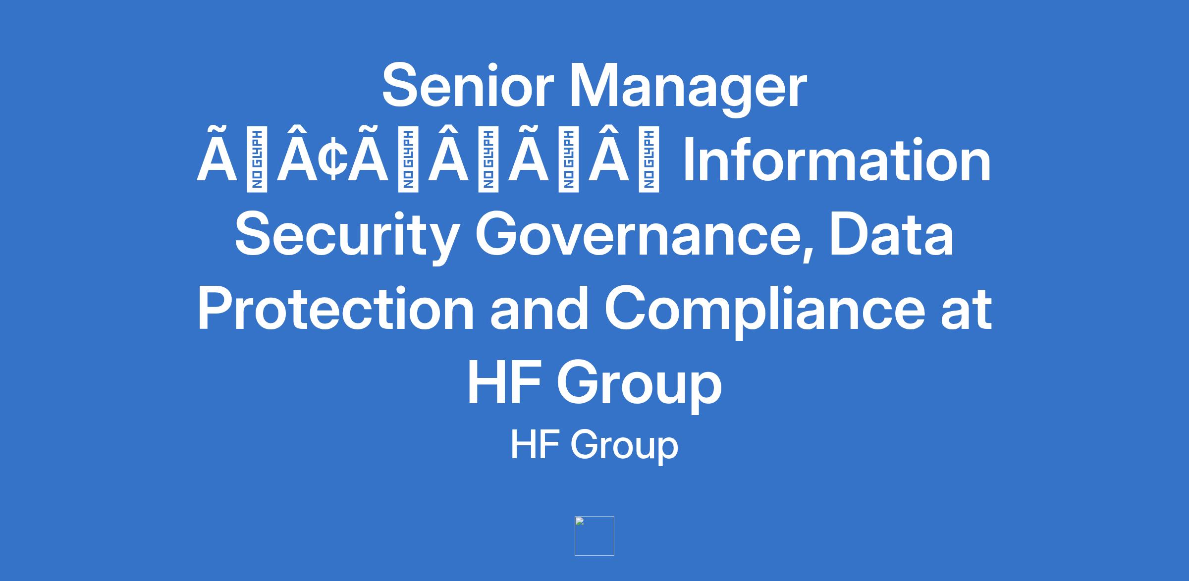 Senior Manager âÃÂàInformation Security Governance, Data Protection and Compliance at HF Group