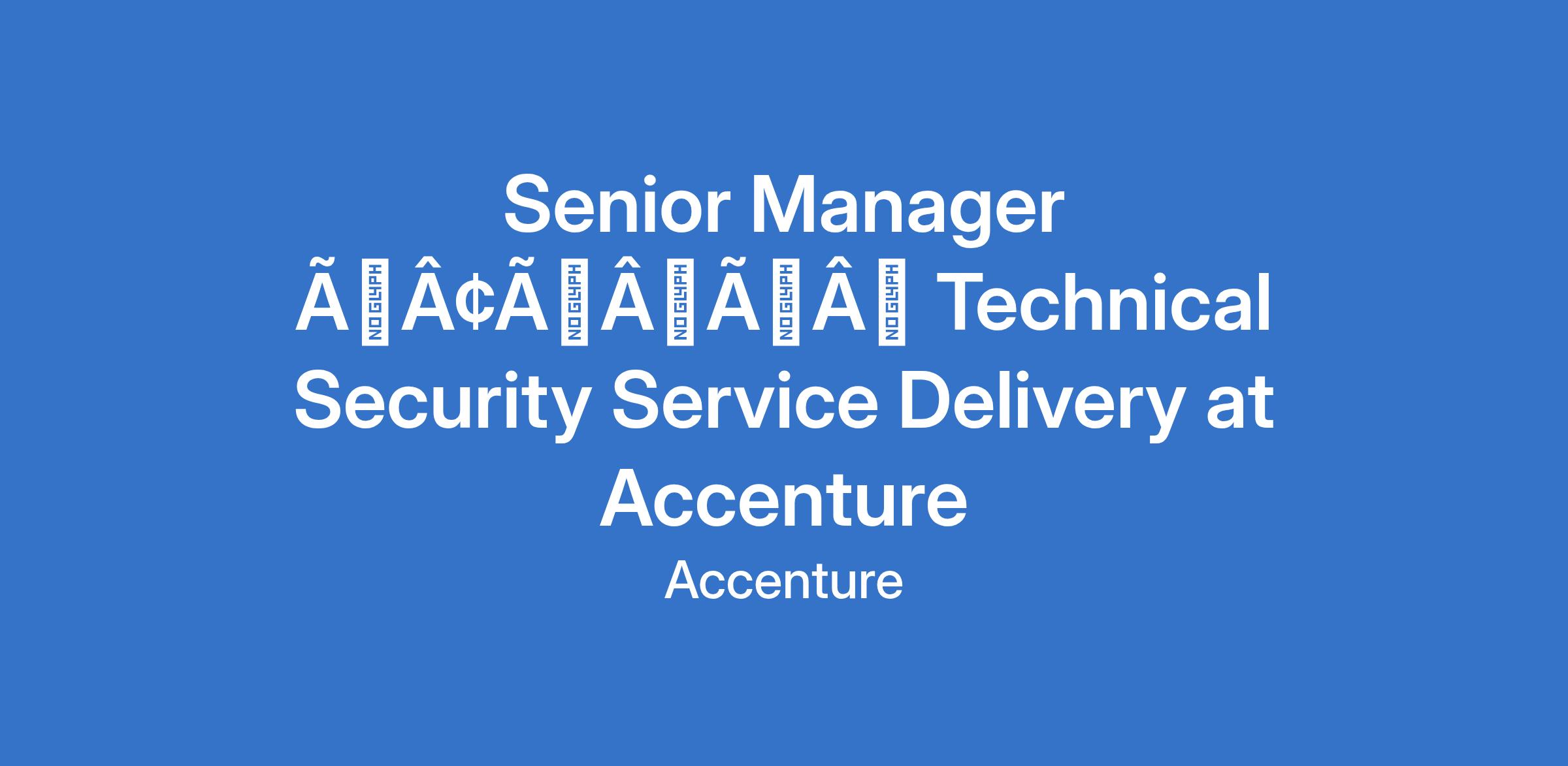 Senior Manager âÃÂàTechnical Security Service Delivery at Accenture