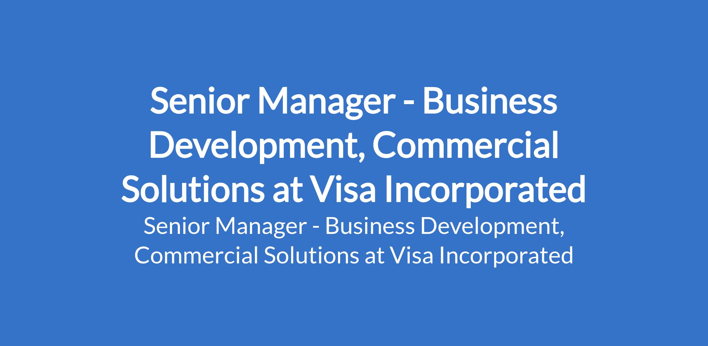 Visa Incorporated is recruiting to fill the position of: Senior Manager - Business Development, Commercial Solutions. The position is located in Lagos State. Interested candidates should possess a Bachelor's Degree with 8 or more years of relevant work experience or an Advanced Degree (e.g., Master's, MBA, JD, MD) with 8 or more years of relevant work experience or a PhD with 2 years of work experience.