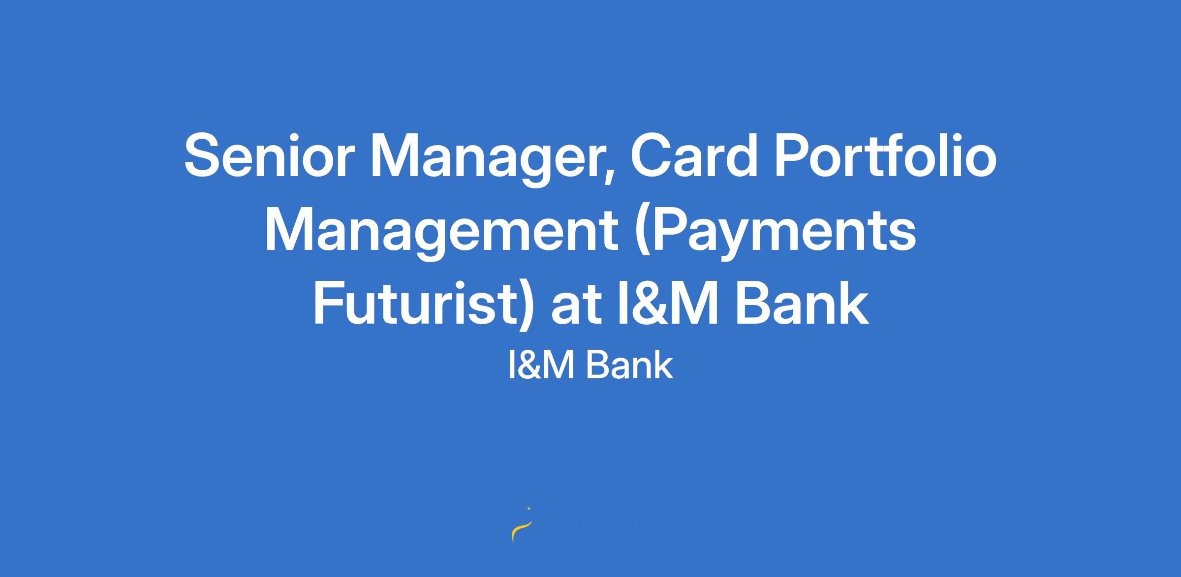 Senior Manager, Card Portfolio Management (Payments Futurist) at I&M Bank