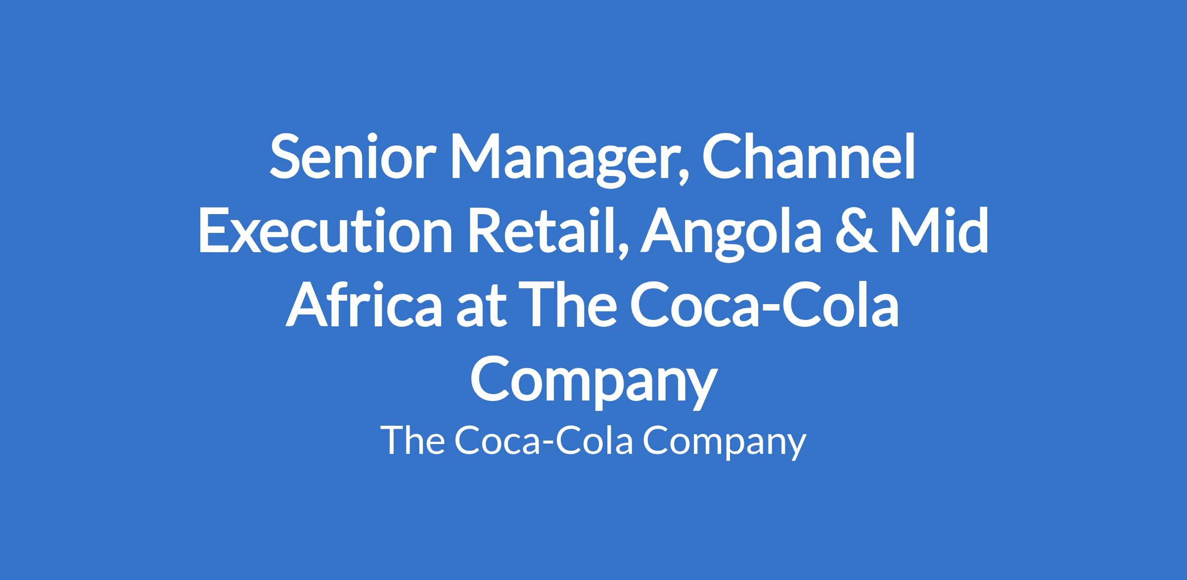 Senior Manager, Channel Execution Retail, Angola & Mid Africa at The Coca-Cola Company