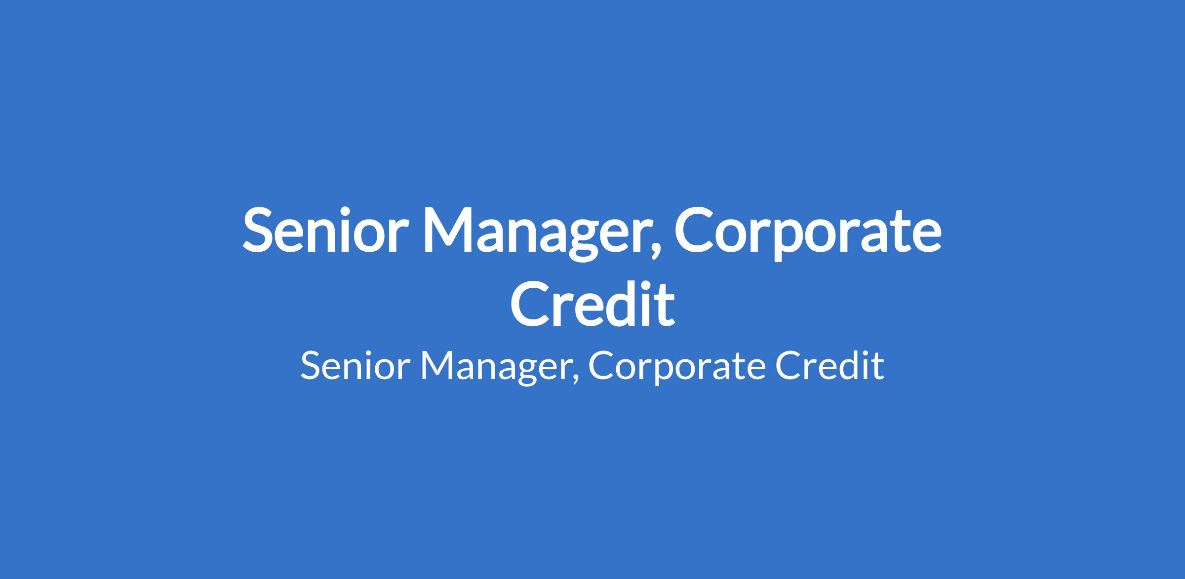 Senior Manager, Corporate Credit