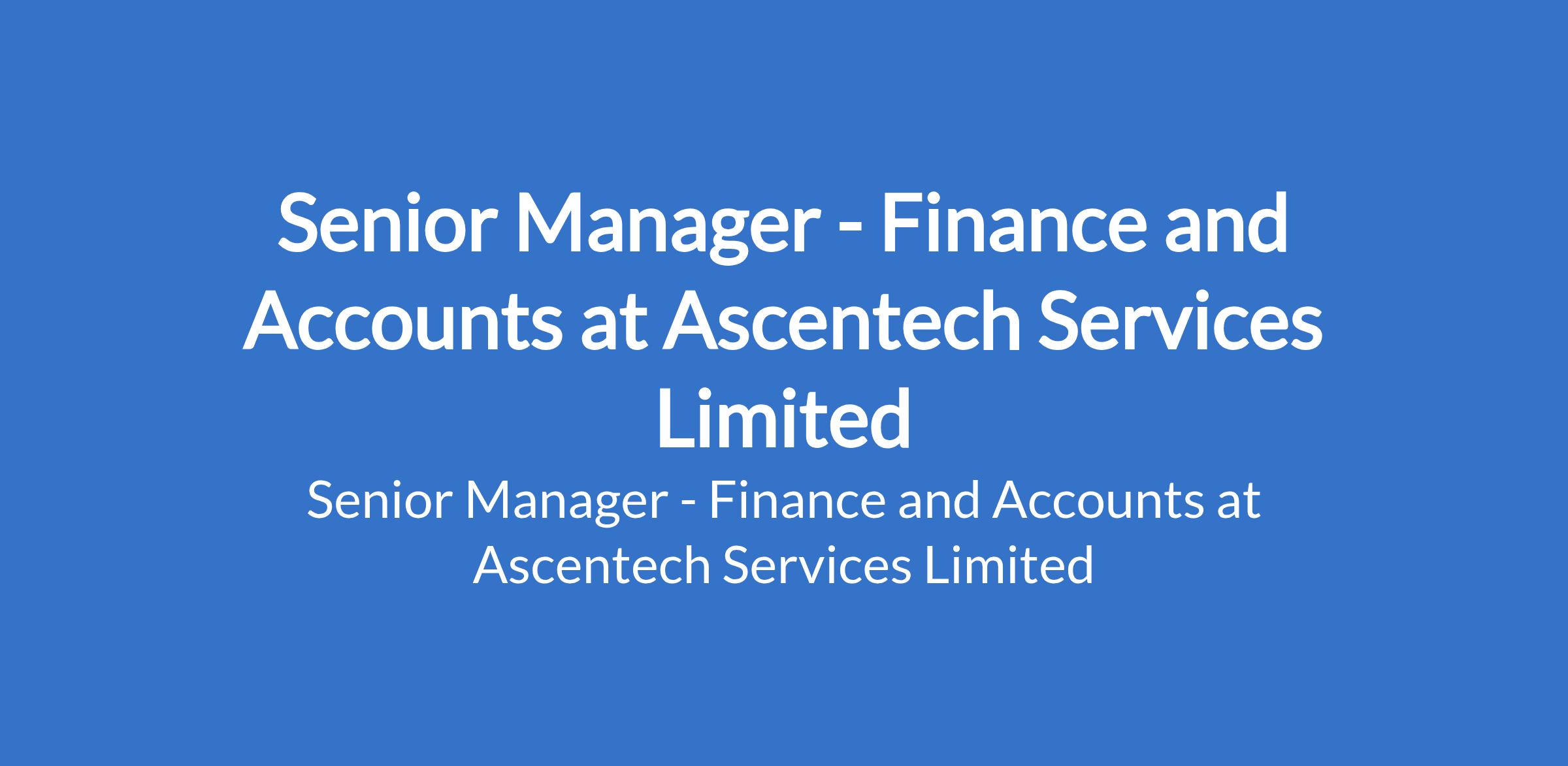 Ascentech Services Limited is recruiting to fill the position of: Senior Manager - Finance and Accounts. The position is located in Sagamu, Lagos State. Salary: N800,000 - N1,000,000 per month. Interested candidates should possess an MSc. / MBA / ICAN or equivalent finance qualification with 10+ years experience in finance & accounting.